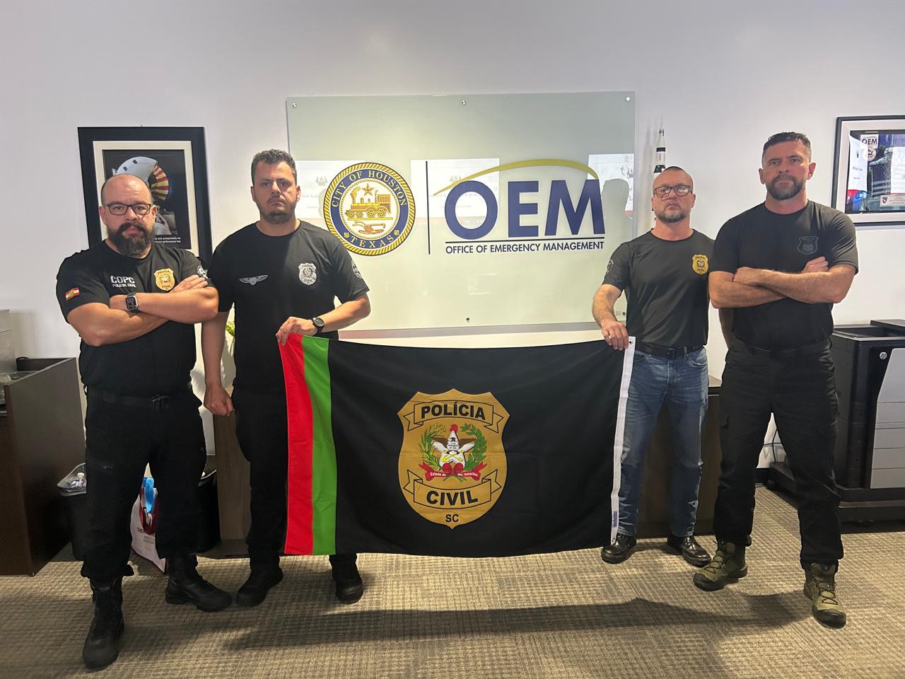 Última atualização: 2025/07/31 4:19:02Quatro delegados da Polícia Civil de Santa Catarina participam de um curso e intercâmbio internacional sobre Gerenciamento de Crises em Grandes Incidentes, realizado em Houston, no Texas (EUA). A capacitação abrange protocolos de resposta a catástrofes naturais, atentados terroristas, ocorrências com múltiplas vítimas e outras situações críticas, com foco na gestão de riscos, cooperação interagências e melhoria dos processos de atuação em eventos de grande escala.