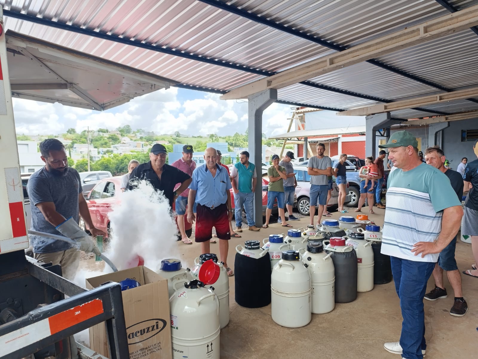 O programa subsidia parte dos custos de sêmen bovino selecionado, utilizado para a obtenção de rebanhos mais produtivos e adaptados. Além disso, oferece suporte técnico e recargas mensais de nitrogênio líquido para conservação do material genético, garantindo maior eficiência na inseminação artificial. Desde o início do ano, já foram realizadas duas recargas em 120 botijões, totalizando 1.970 litros de nitrogênio.