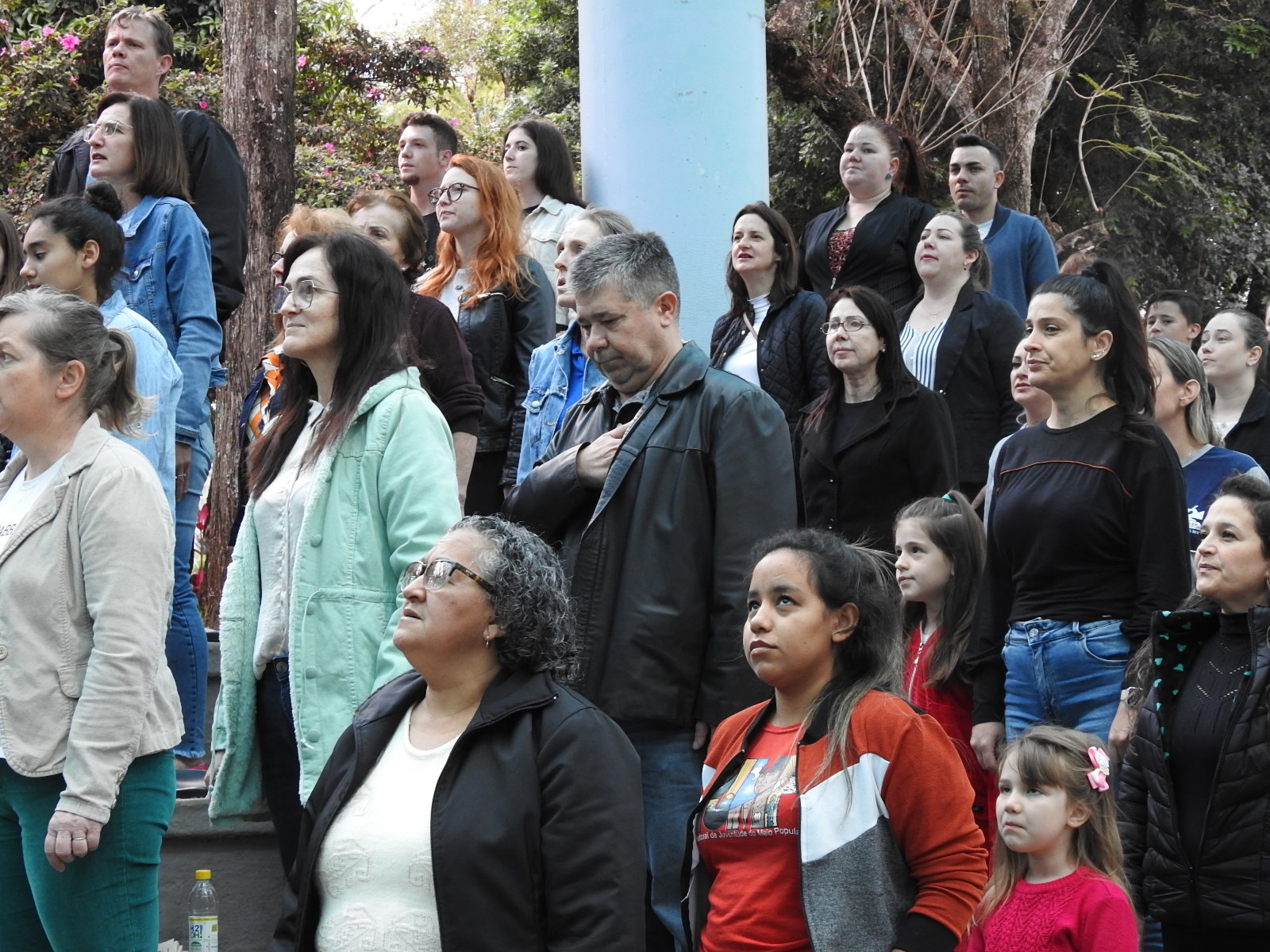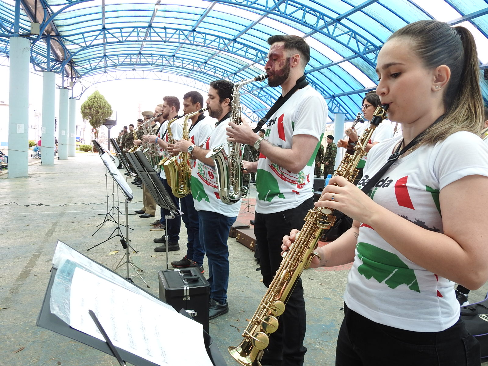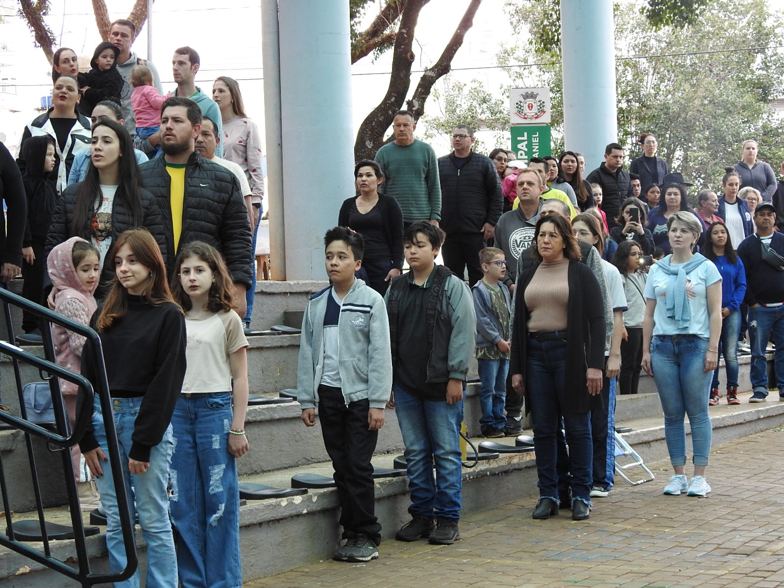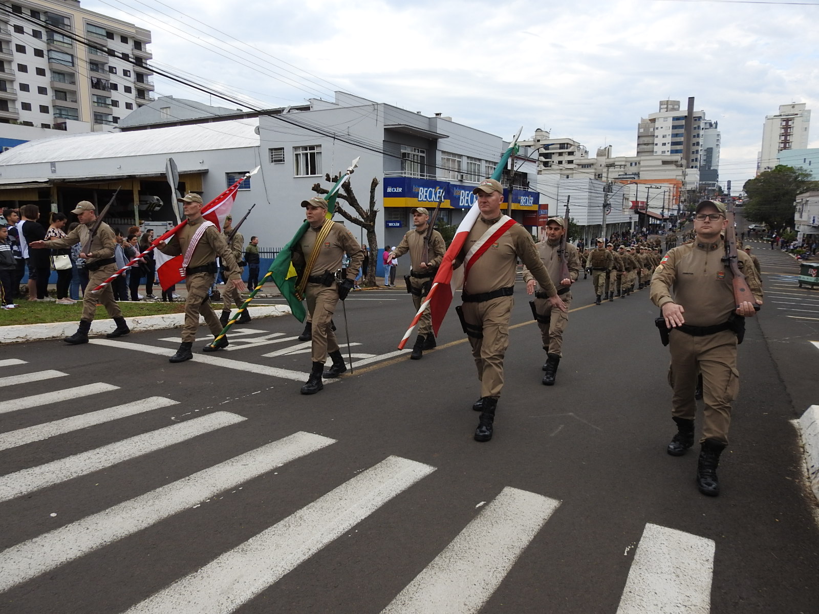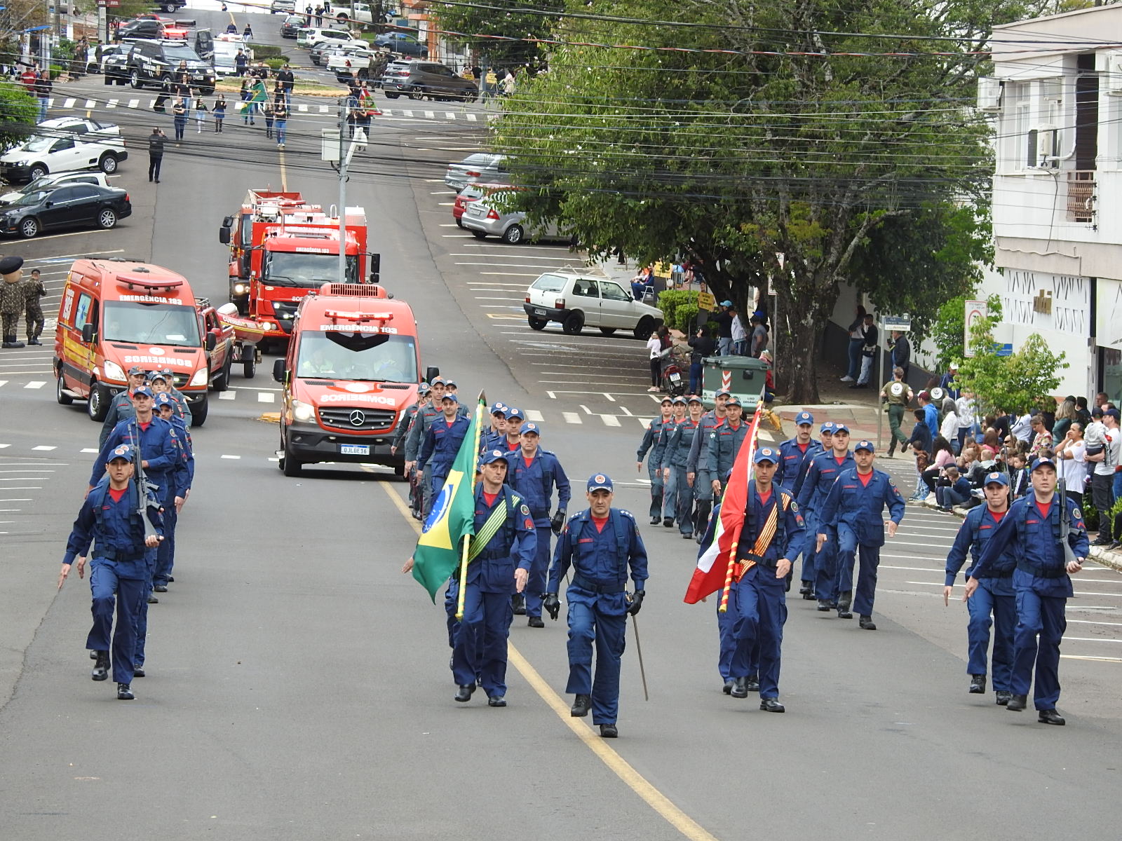 Centenas de pessoas acompanharam o Desfile Militar que marcou o 07 de Setembro, na manhã desta quinta-feira, em São Miguel do Oeste. A programação iniciou ainda às 8h, com o Hasteamento das Bandeiras na Praça Walnir Bottaro Daniel, pelo prefeito, Wilson Trevisan; juiz da Vara Criminal, Marcio Cristófoli; e presidente da Câmara de Vereadores, Paulo Drumm. Também foi tocado o Hino Nacional e realizada Hora Cívica, a cargo da Banda Municipal.