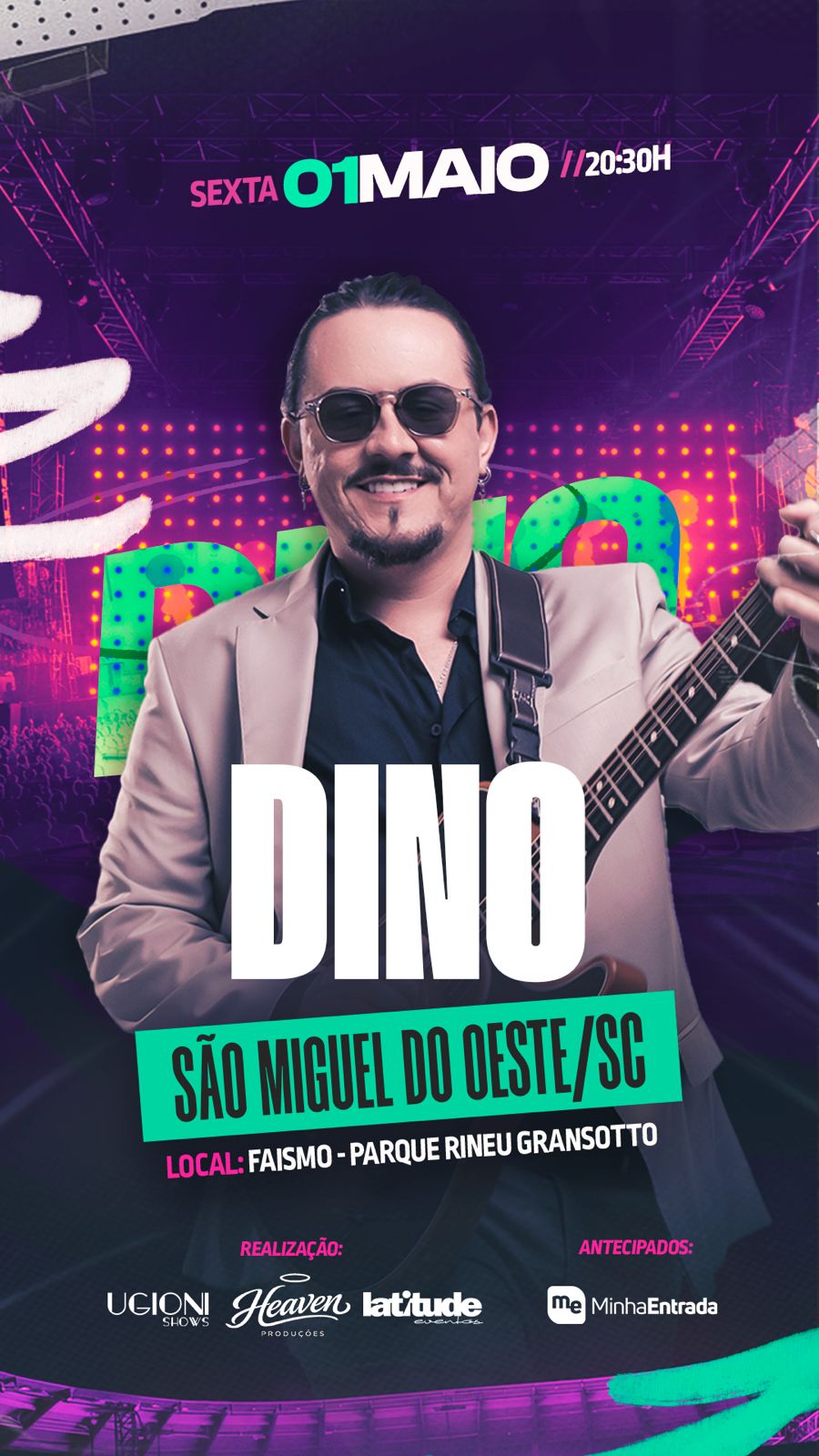 Ingressos em: https://minhaentrada.com.br/evento/dino-fonseca-em-sao-miguel-do-oeste-28510