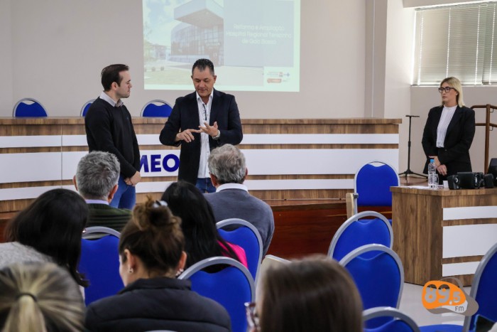 O Diretor do Hospital Regional Terezinha Gaio Basso e a engenheira que acompanha o projeto de ampliação do hospital apresentaram durante assembleia do Consórcio Intermunicipal de Saúde da Associação dos Municípios do Extremo-Oeste de Santa Catarina (CIS-AMEOSC) realizada nesta terça-feira, 20, na sede da AMEOSC em São Miguel do Oeste.