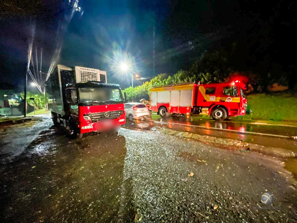 Uma mulher, um adolescente e um homem ficaram feridos após se envolverem em uma dupla colisão envolvendo dois carros e um caminhão. O acidente foi registrado por volta das 20h desta segunda-feira (18) na SC-163, em frente a comunidade do Bairro Santa Rita em São Miguel do Oeste.