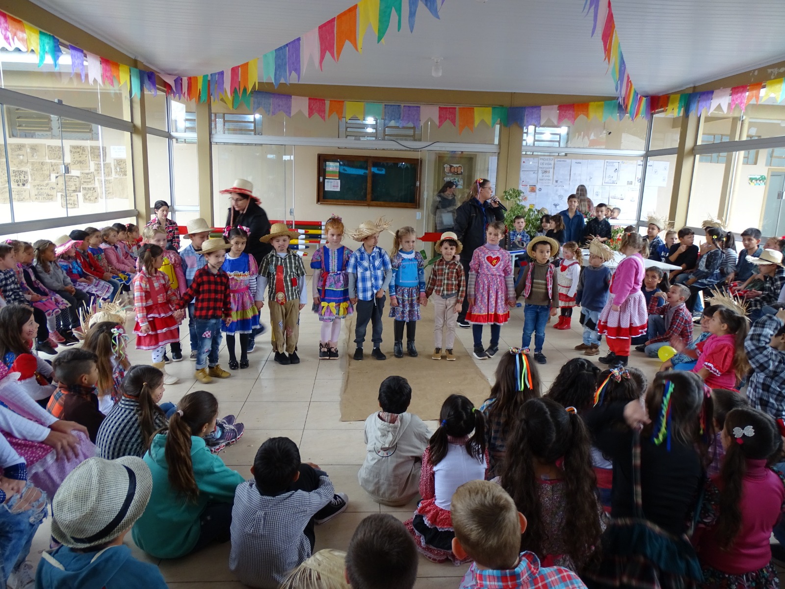 A Escola Municipal Bandeirante e o Centro de Educação Infantil Nosso Sonho realizaram suas festividades na sexta-feira, dia 23, enquanto a Escola Municipal Anita Garibaldi trouxe o clima junino para o sábado, 17 de junho.