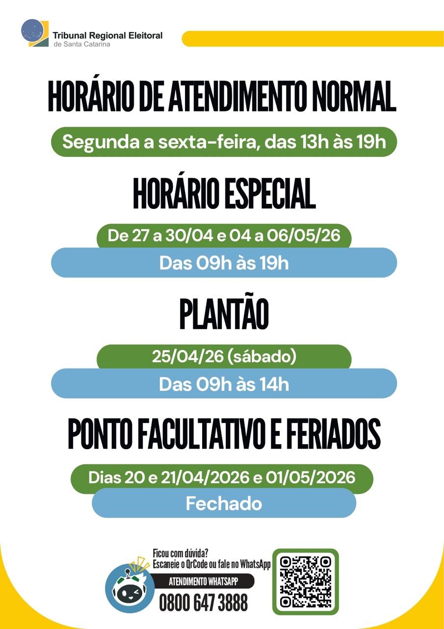 Para atender a demanda, o cartório eleitoral vai ampliar o horário de funcionamento nos últimos dias de abril e no início de maio, além de realizar plantão em um sábado para facilitar o acesso de quem não consegue ir durante a semana, sendo que o atendimento presencial é obrigatório para quem ainda não fez a biometria, enquanto quem já possui o cadastro pode resolver parte dos serviços pela internet, e a orientação principal é não deixar para a última hora para evitar filas e transtornos.