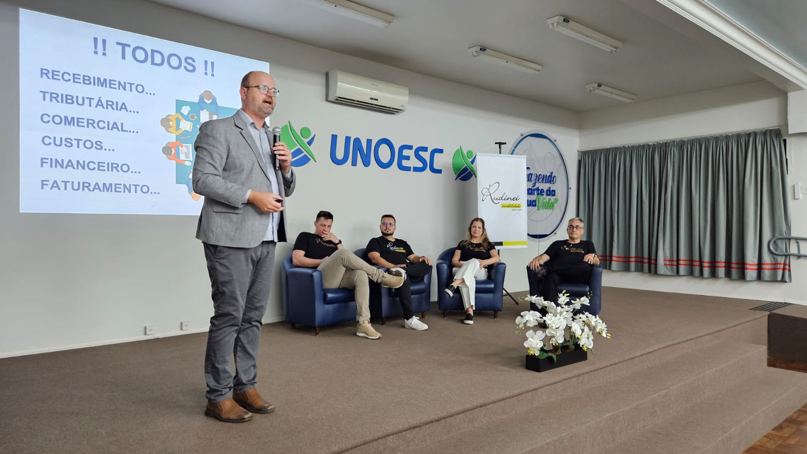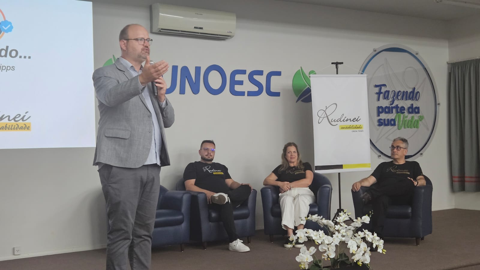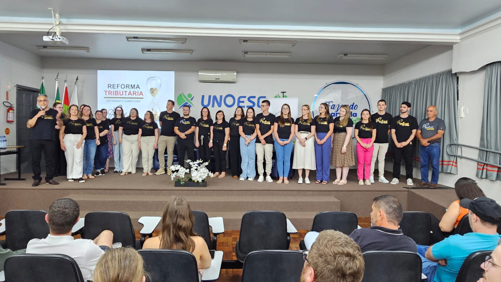 Última atualização: 2025/12/08 10:05:36A Rudinei Contabilidade promoveu no dia 4 de dezembro dois encontros especiais com clientes, empresários e parceiros para debater os impactos da Reforma Tributária. Os eventos aconteceram pela manhã em Guaraciaba e à noite em São Miguel do Oeste, reunindo 350 participantes interessados em compreender as mudanças que afetam diretamente a vida das empresas.
