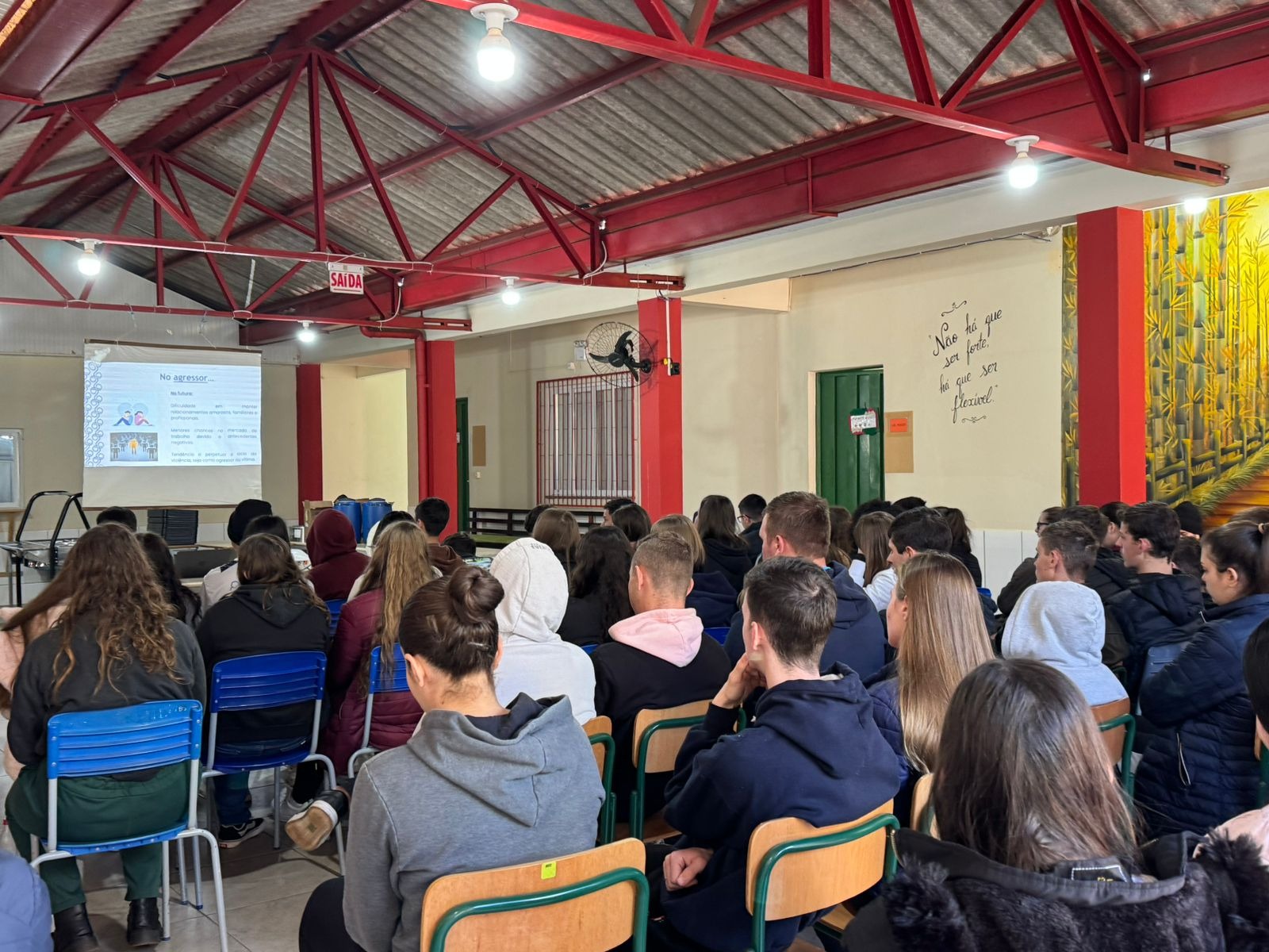 A atividade buscou ainda incentivar os adolescentes a assumirem papel ativo no enfrentamento a comportamentos abusivos, reforçando a importância da prevenção desde cedo e da não naturalização de atitudes violentas. De forma teórica e também dinâmica, os psicólogos envolvidos abordaram o tema com uma linguagem acessível, estimulando os jovens a refletirem criticamente sobre suas próprias vivências e relações.