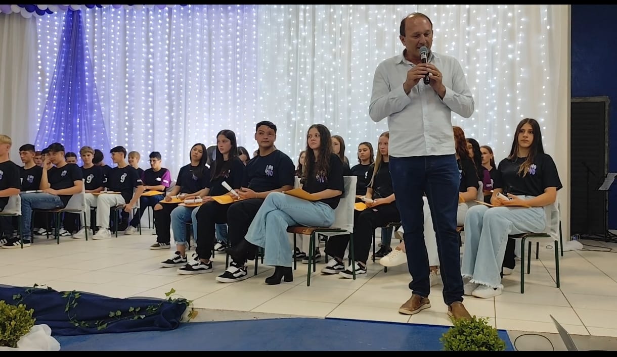 O prefeito Vandecir Dorigon destacou em sua fala a importância da educação como base para um futuro promissor. “Cada um de vocês é motivo de orgulho para Guaraciaba. Continuem acreditando nos seus sonhos e se dedicando, pois o futuro pertence a quem se esforça”, ressaltou.