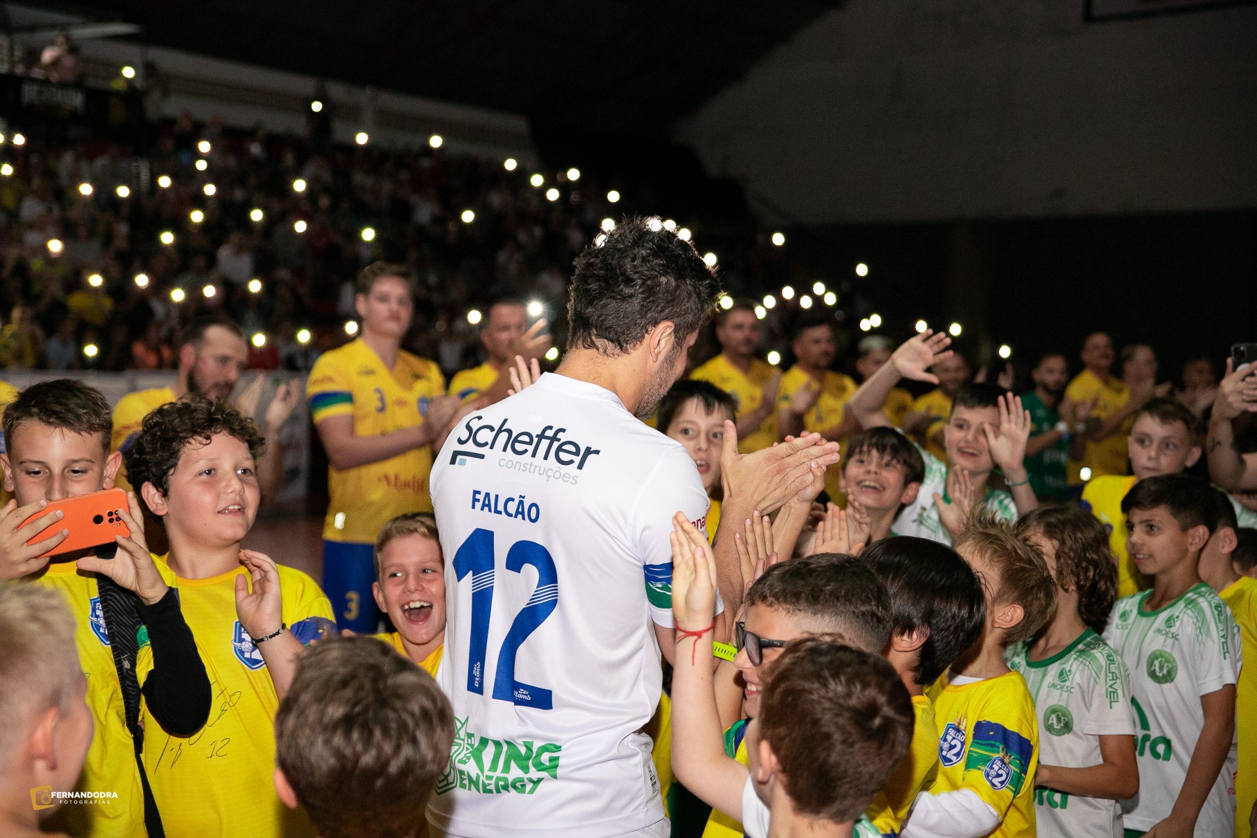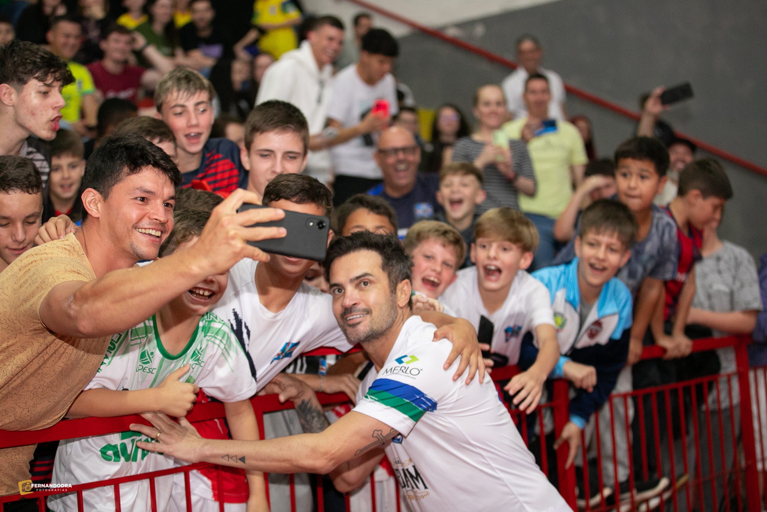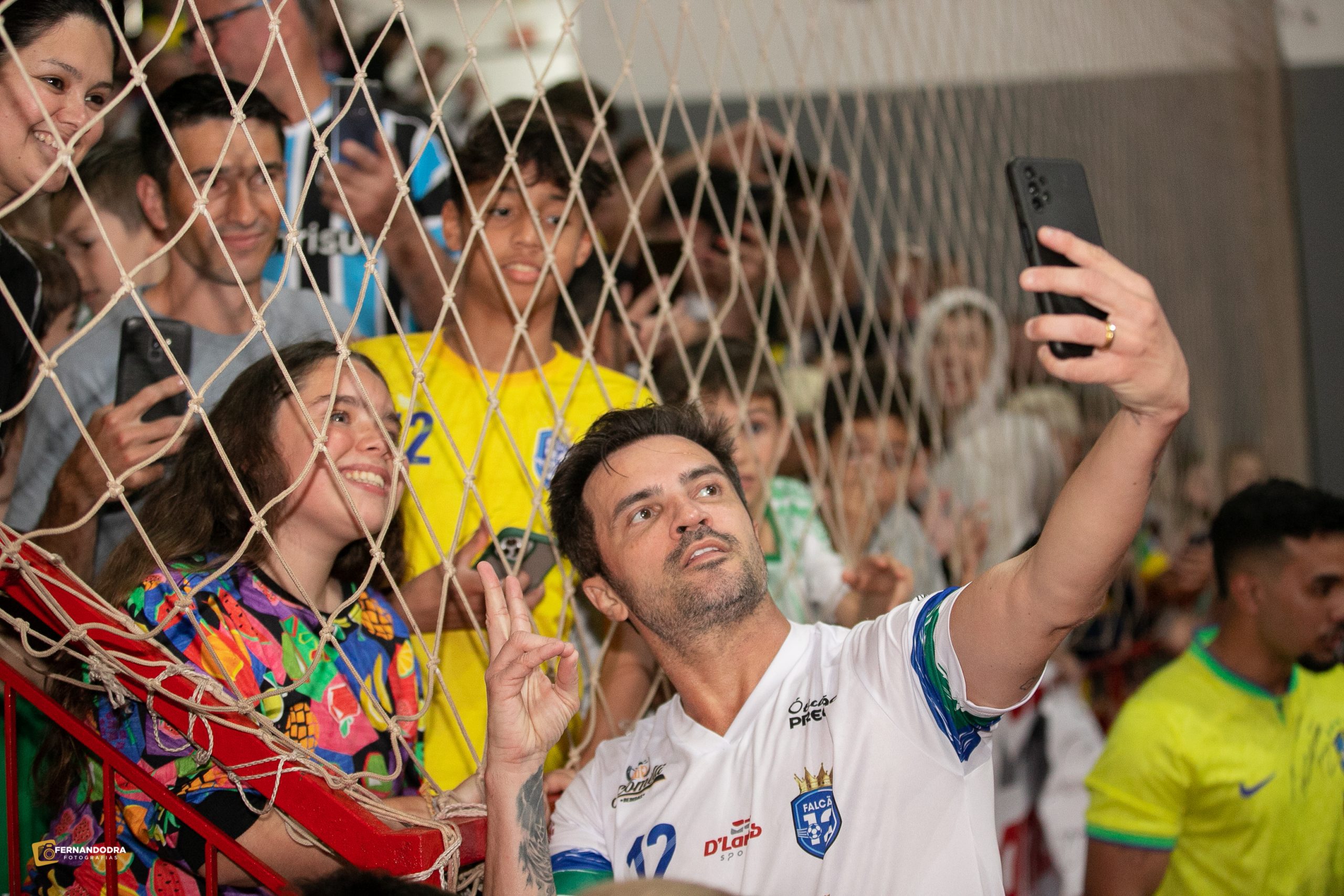Mais de 1.300 pessoas estiveram na noite desta segunda-feira, 27, no ginásio do Guarani em São Miguel do Oeste para ver o Maior jogador de futsal de todos os tempos. FALCÃO marca presença por onde passa em jogos festivos. Um verdadeiro Showman, encantou o público com lances de efeitos e jogadas fabulosas que marcaram sua carreira ao longo dos anos.