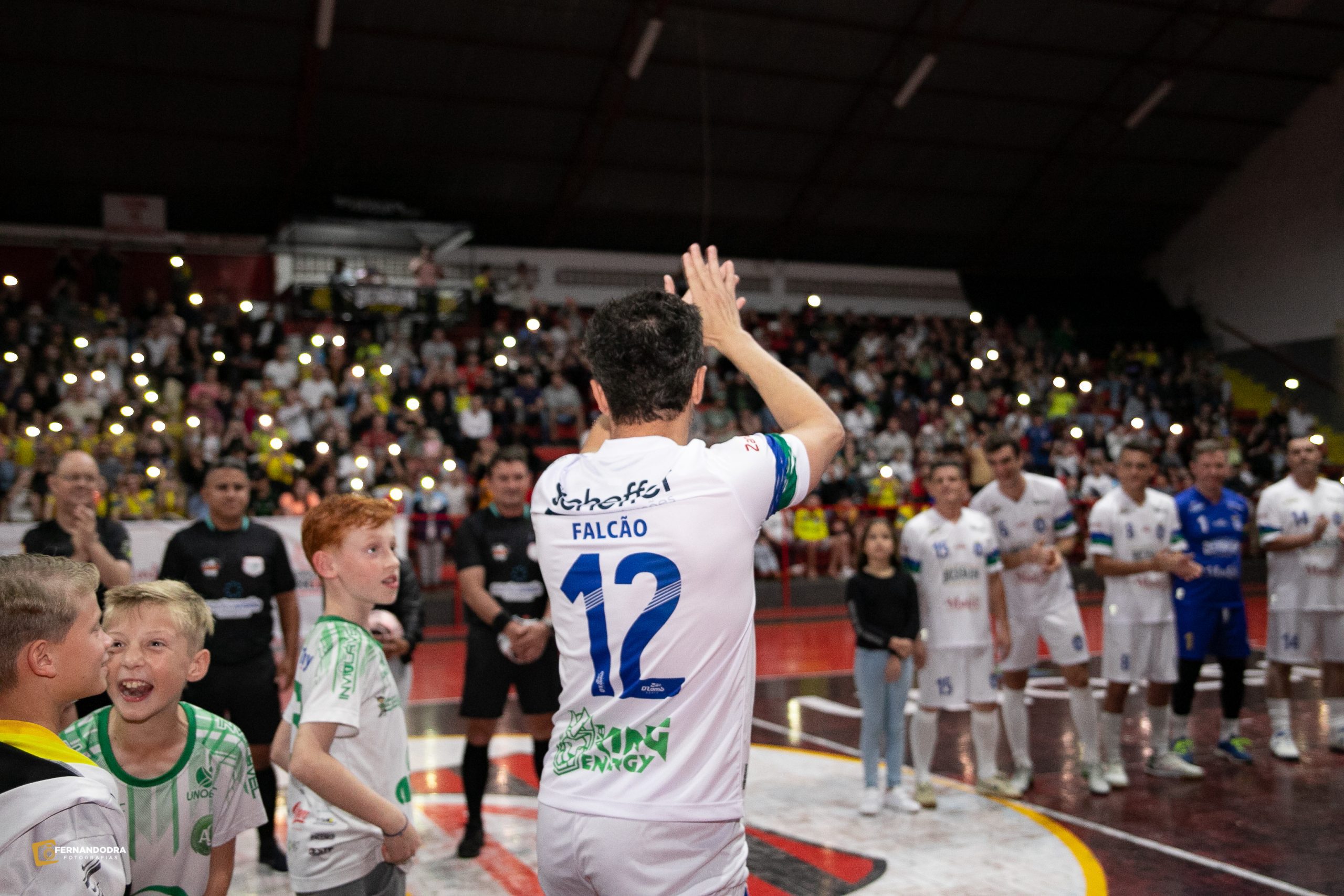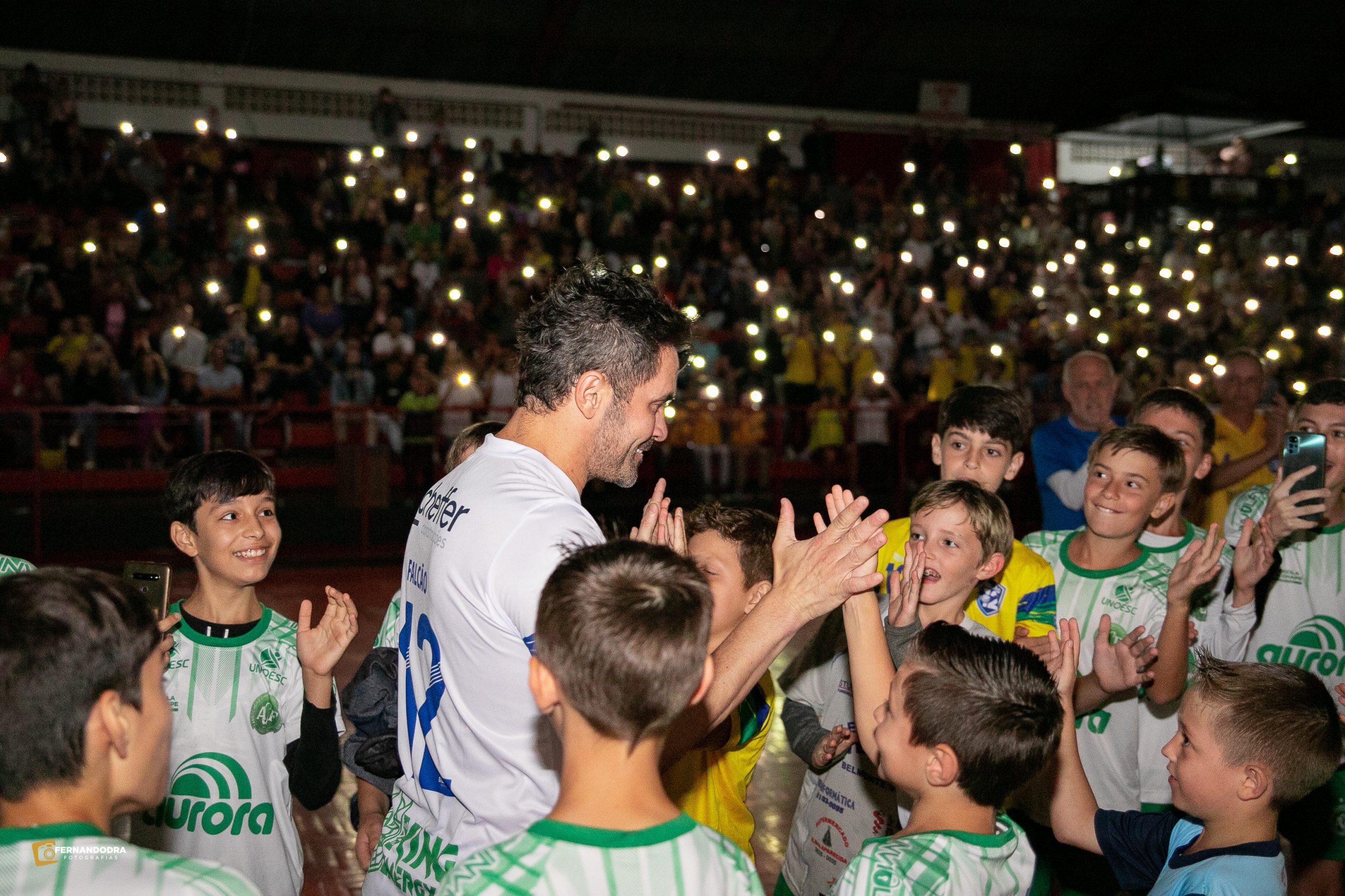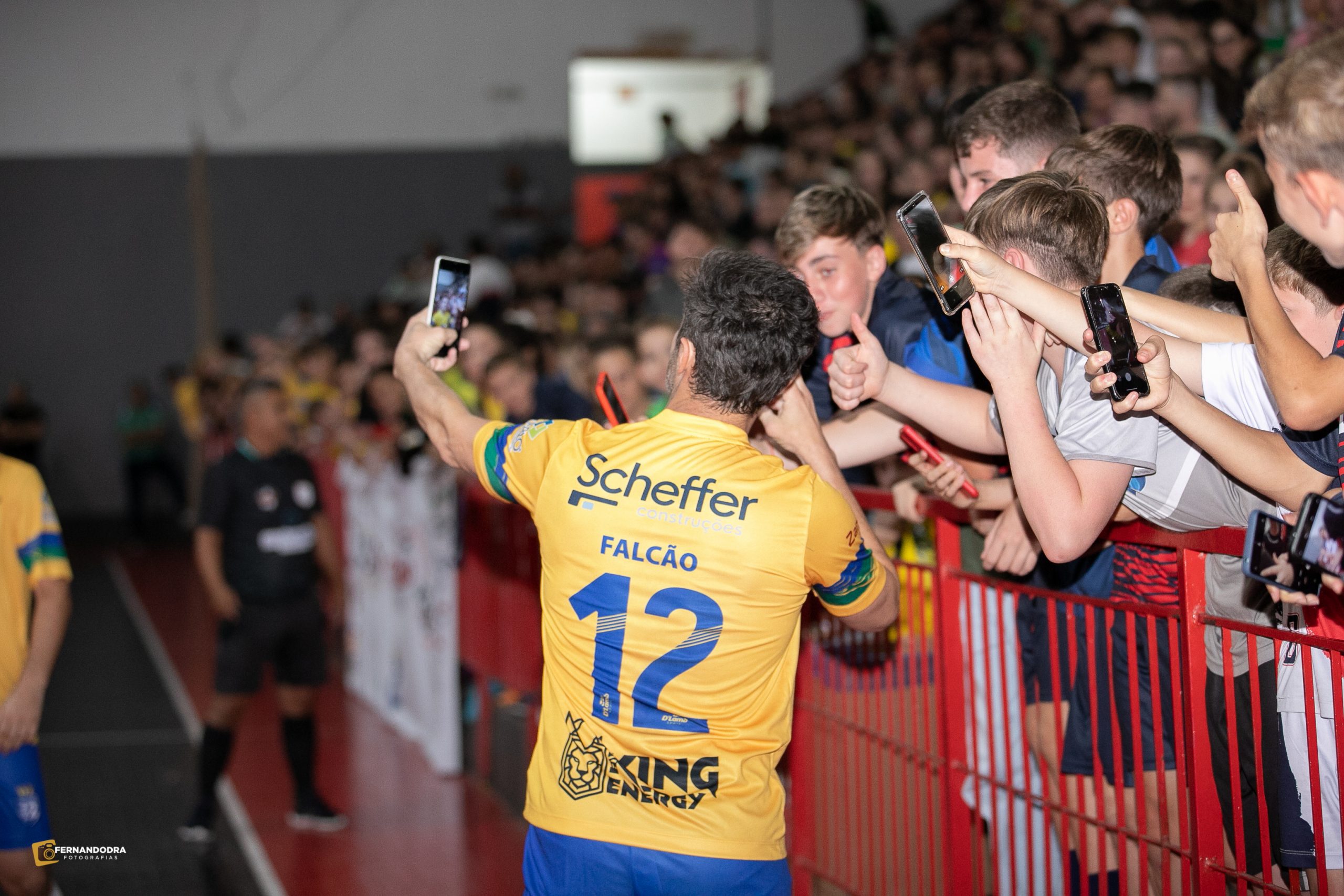Mais de 1.300 pessoas estiveram na noite desta segunda-feira, 27, no ginásio do Guarani em São Miguel do Oeste para ver o Maior jogador de futsal de todos os tempos. FALCÃO marca presença por onde passa em jogos festivos. Um verdadeiro Showman, encantou o público com lances de efeitos e jogadas fabulosas que marcaram sua carreira ao longo dos anos.
