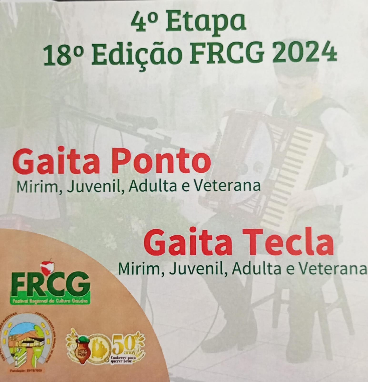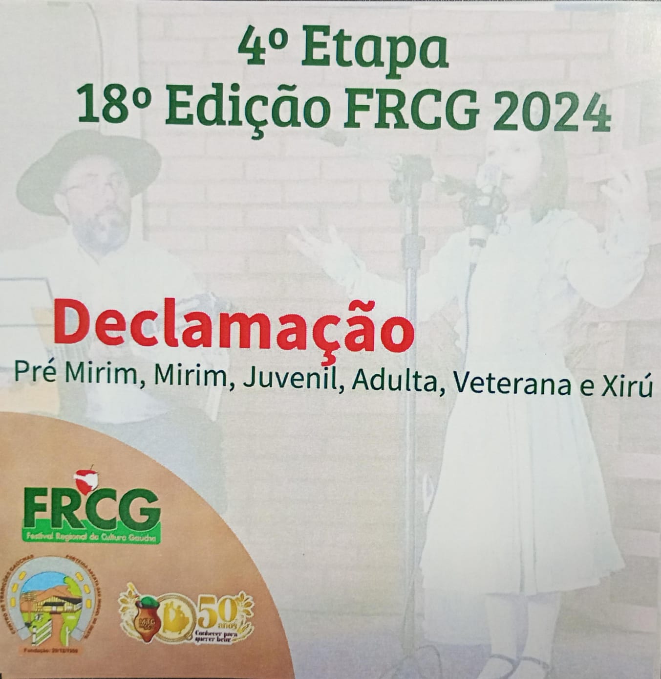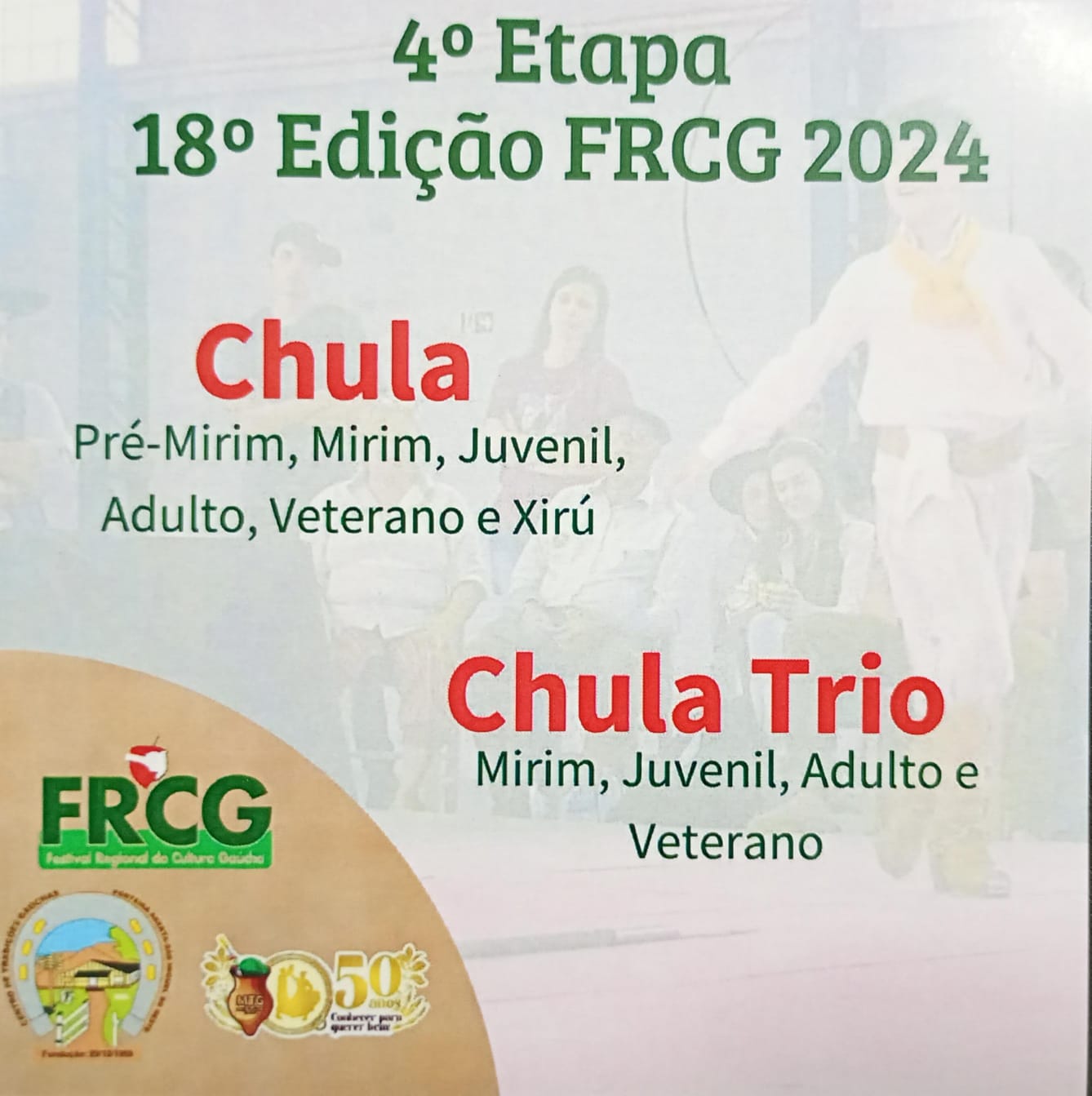 A 4ª etapa da 18ª edição do Festival Regional da Cultura Gaúcha (FRCG) será realizada nos dias 30 de novembro e 1º de dezembro de 2024, com diversas atividades culturais e competitivas que prometem valorizar as tradições gaúchas.