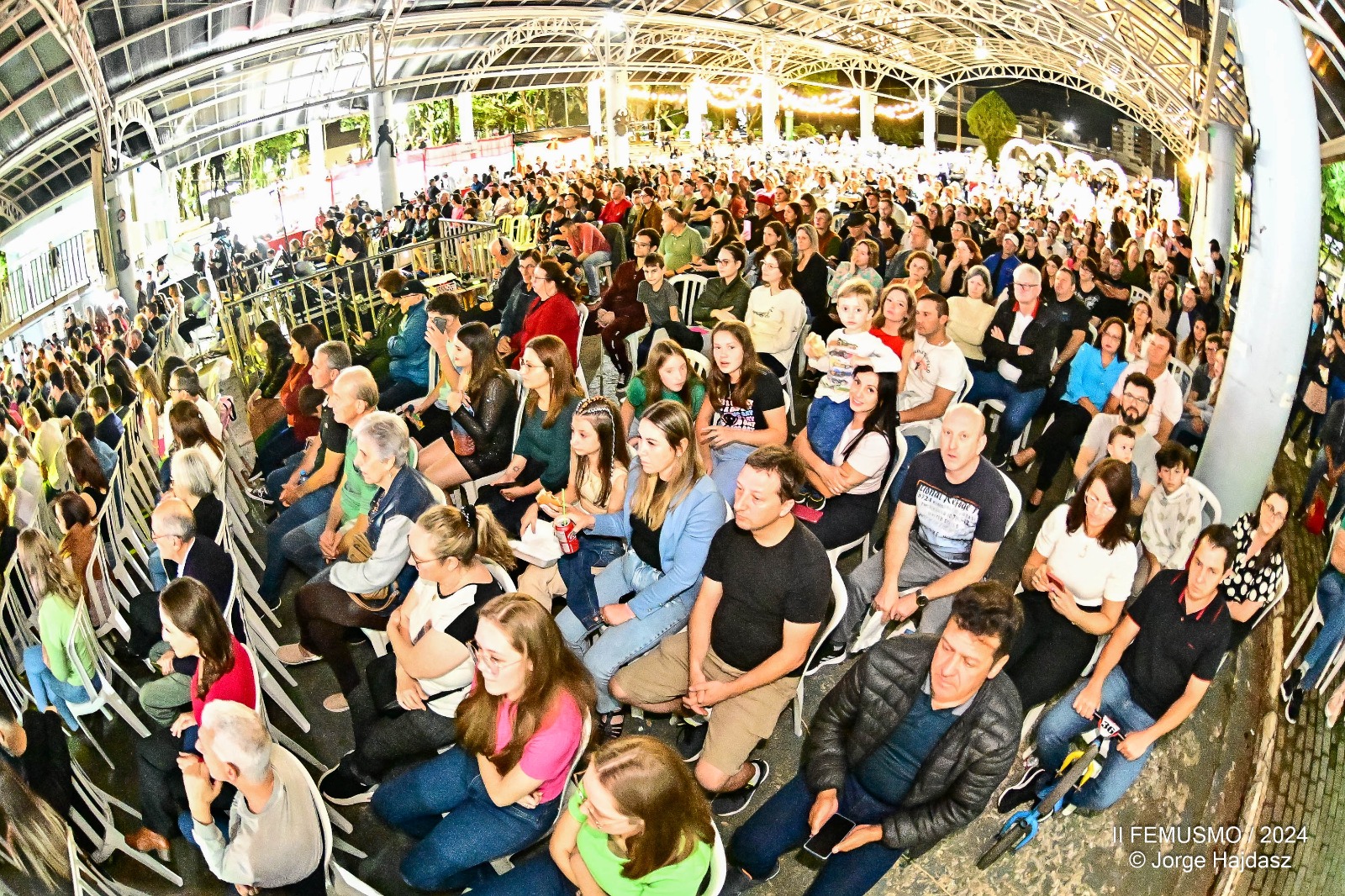 Um grande público compareceu à área coberta da Praça Walnir Bottaro Daniel, na noite deste sábado (12), para acompanhar as finais das quatro categorias do II Femusmo (Festival de Música de São Miguel do Oeste). O evento é promovido pela Administração Municipal, por meio da Secretaria de Esporte e Cultura, com o apoio cultural da dupla Igor e Junior.