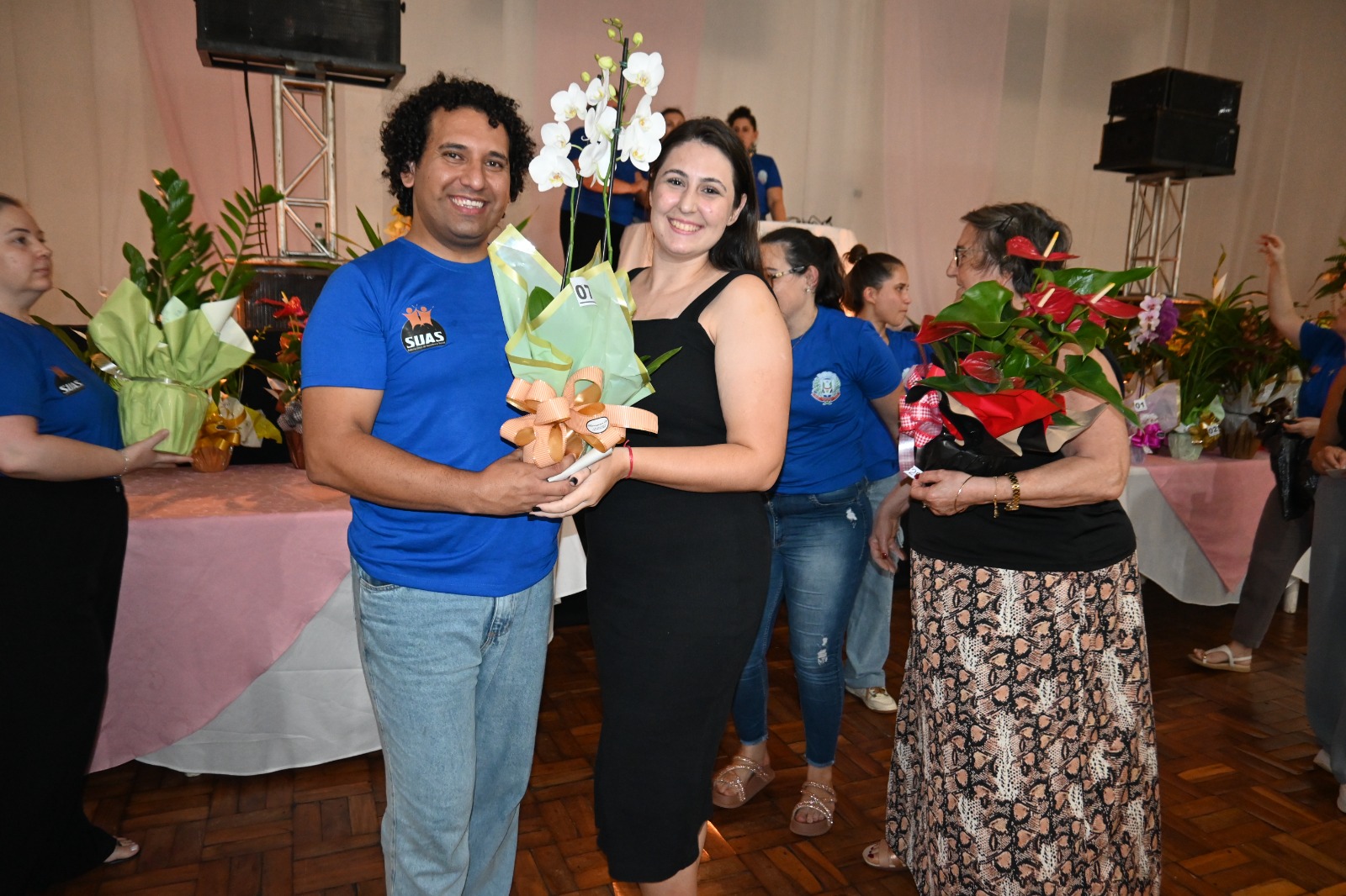 A programação seguiu com um animado bingo recreativo, que distribuiu mais de 100 arranjos de flores entre as participantes, tornando a noite ainda mais especial. Durante todo o evento, também foi servido um coquetel com salgados e bebidas, proporcionando um ambiente de confraternização e integração.