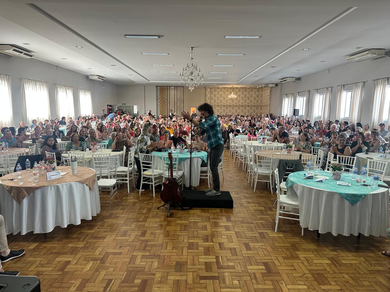 A principal atração foi a palestra-show conduzida pelo PhD Roselei Angst, que apresentou uma reflexão leve e inspiradora sobre o propósito de vida na maturidade, defendendo o pensamento positivo como ferramenta essencial para uma vida plena. O palestrante destacou a importância de cultivar diariamente bons pensamentos, valorizar o que faz bem e ressignificar o envelhecimento. Em sua fala, evitou o uso de termos como “idosos” ou “terceira idade”, preferindo se referir ao público como uma juventude repleta de planos e sonhos, incentivando que mantenham coragem, gratidão e novos propósitos.