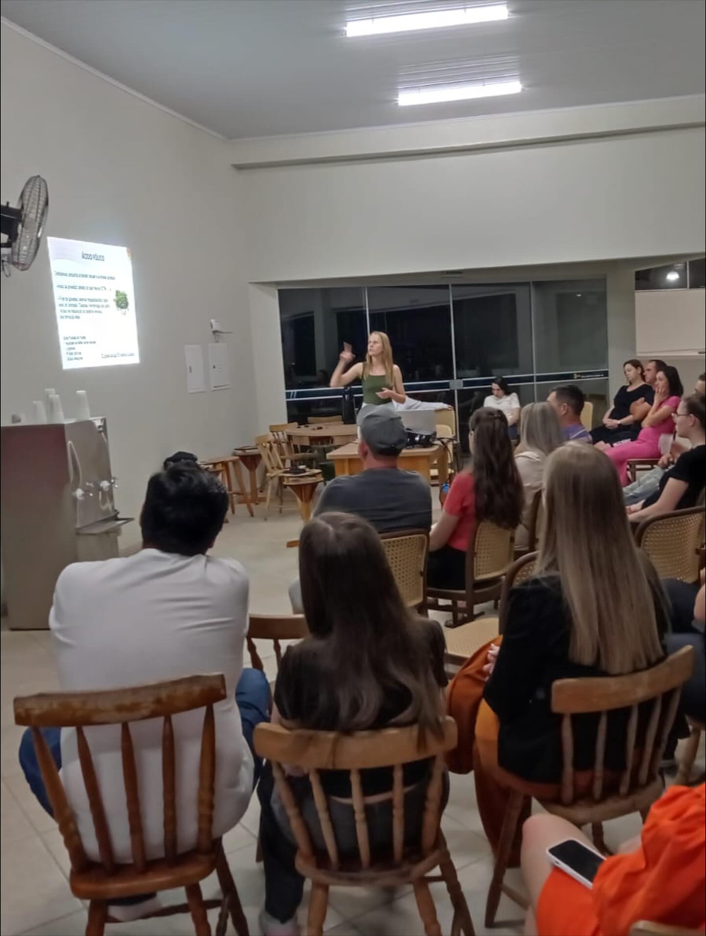 O encontro contou com a participação da nutricionista Viviane e da farmacêutica Caroline, que discutiram temas essenciais sobre nutrição saudável, segurança no uso de medicamentos e cuidados que contribuem para uma gestação mais tranquila e segura.