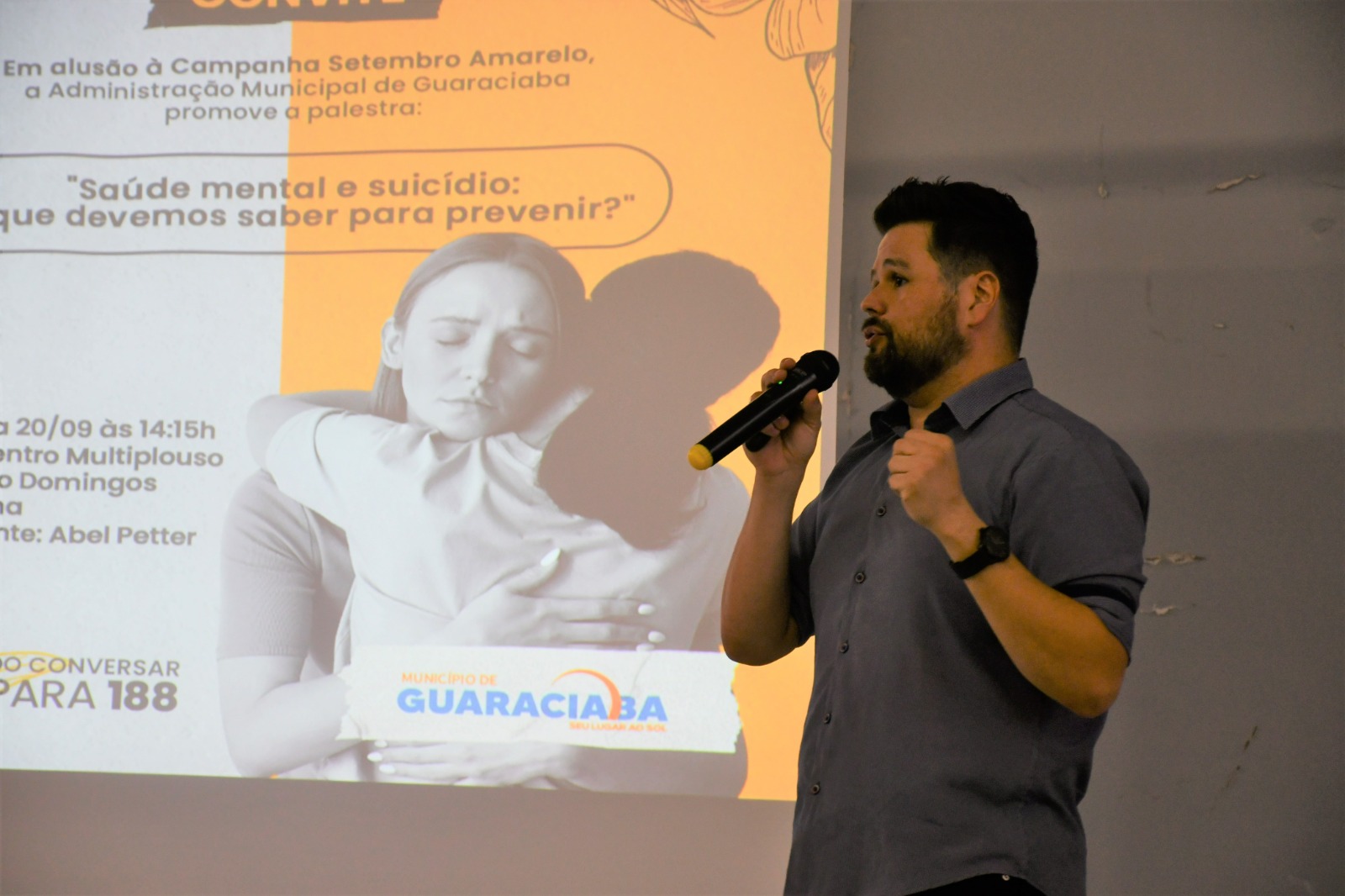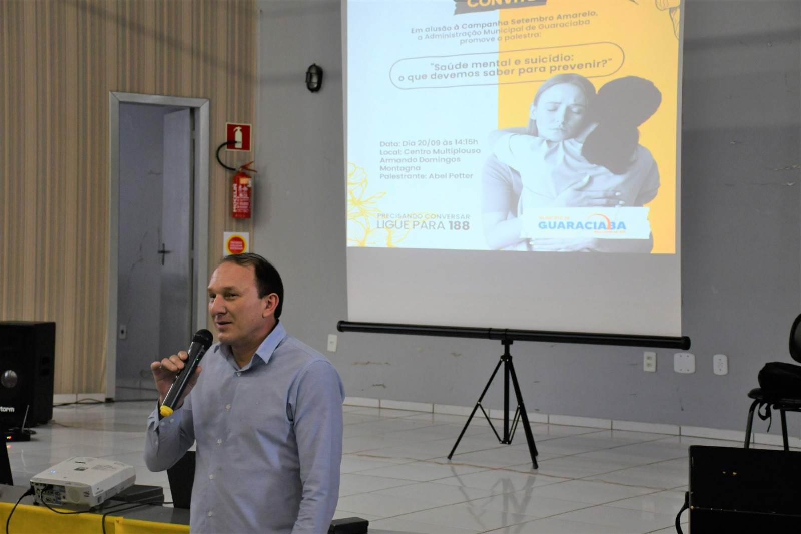 A Secretaria Municipal de Saúde de Guaraciaba realizou, ontem, dia 20, uma valiosa palestra com o tema: “Saúde mental e suicídio: O que devemos saber para prevenir?”, ministrada pelo palestrante Abel Petter. O evento ocorreu no Auditório do Multiplouso Armando Domingos Montagna.
