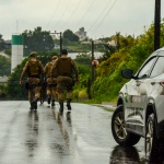 A guarnição conseguiu alcançar e realizar a abordagem do homem, o qual, assim que os policiais se aproximaram, tirou da maga do casaco, uma faca de aprox. 20 centímetros de lâmina.