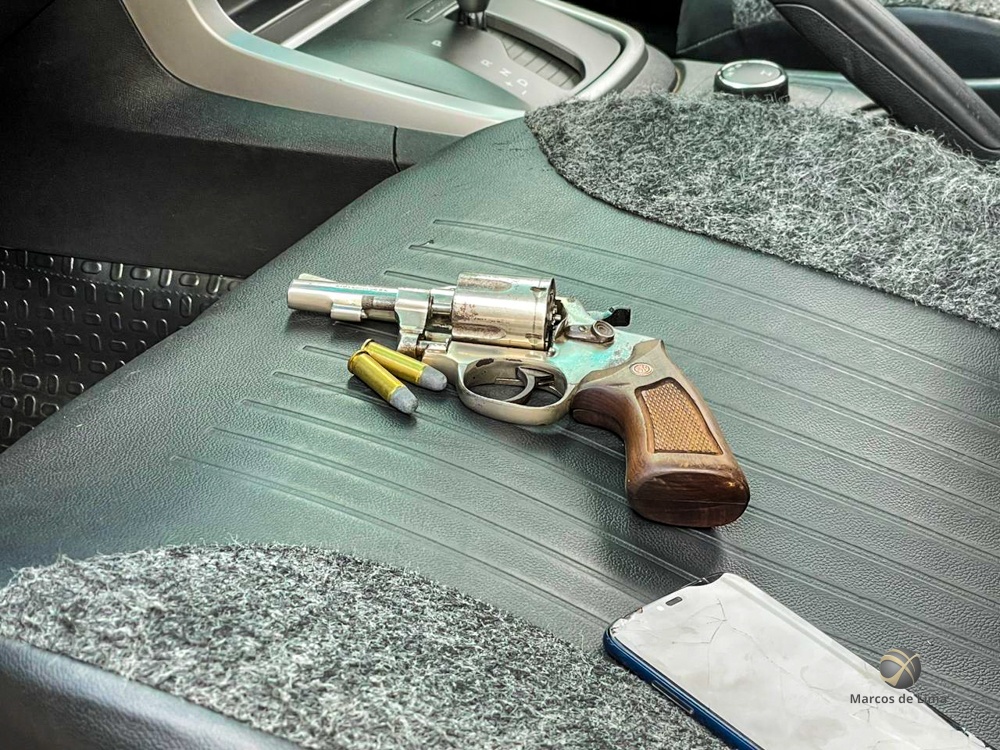 Aos policiais um dos homens afirmou que possuía uma arma no porta-luvas do carro. Ao verificar foi localizado um revólver calibre 38 com duas munições.