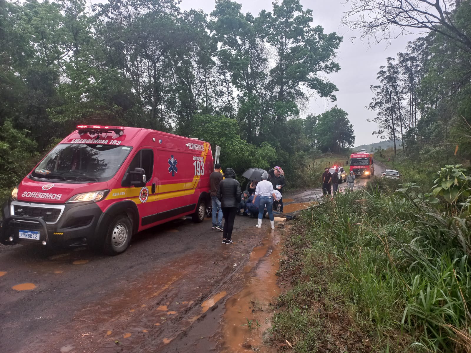 A vítima estava consciente, porém, apresentava suspeitas de lesão na coluna, fratura no tórax e relatava dores na cabeça