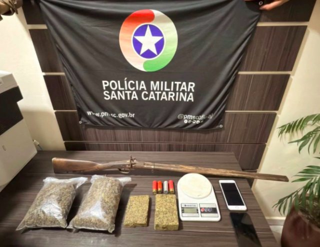 Ação conjunta da PM localizou o agressor e apreendeu a adolescente que o acompanhava. Na casa do irmão, onde o suspeito se escondeu, foram encontradas drogas, munições e uma espingarda
