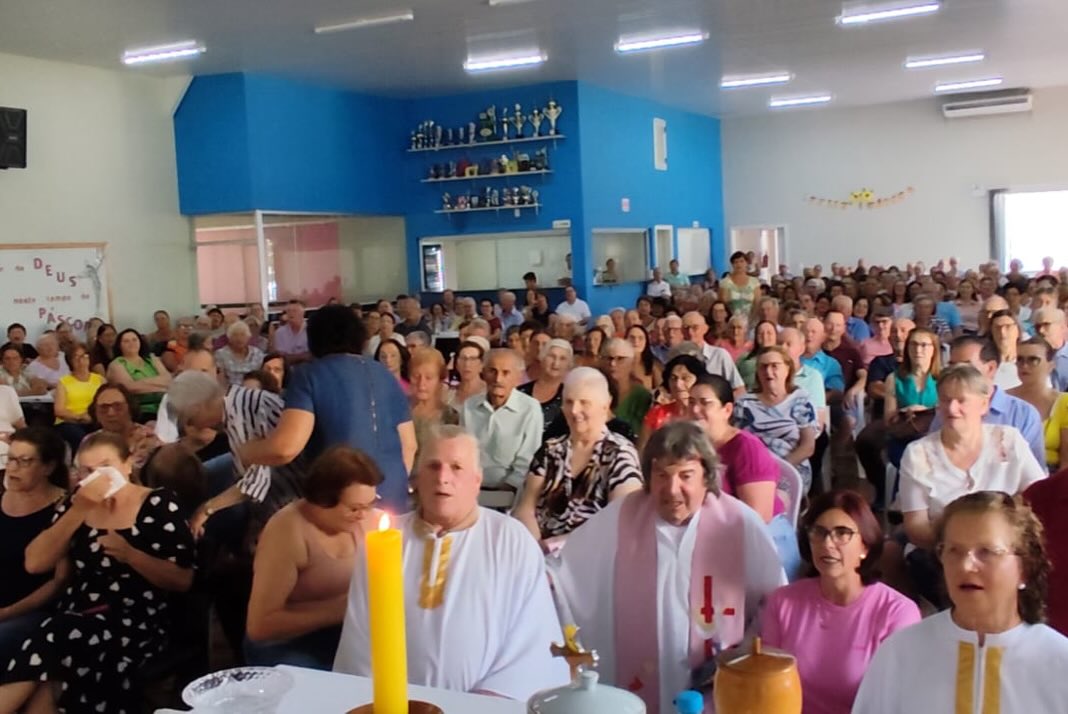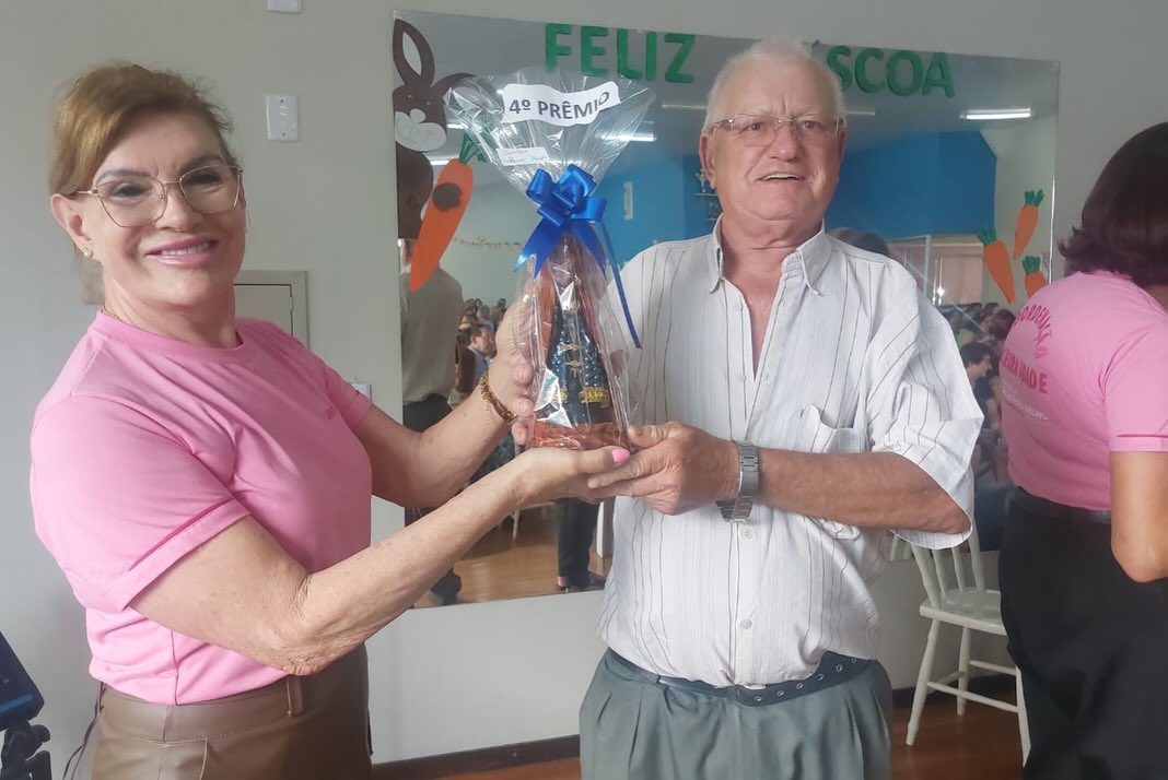 A programação contou com Santa Missa celebrada pelo padre Nelson e atividades voltadas ao fortalecimento de vínculos, incluindo a realização de um bingo com a distribuição de 10 prêmios, proporcionando descontração e interação entre os participantes. Logo após, foi servido um delicioso lanche para todos os idosos presentes no evento, que também receberam um pequeno mimo com símbolo de Páscoa.