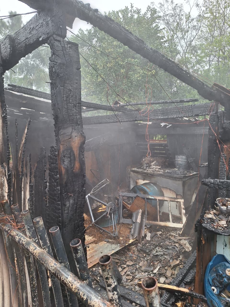 Segundo familiares, duas pessoas estavam na residência no momento do início do incêndio, mas conseguiram sair ilesas