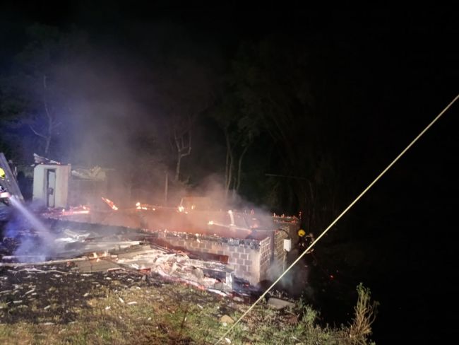 Ao chegarem no local, os bombeiros constataram que se tratava de um incêndio em uma edificação mista, unifamiliar, com aproximadamente 130 m². Infelizmente, quando a guarnição chegou, a edificação já estava completamente tomada pelas chamas, que estavam em fase de redução.