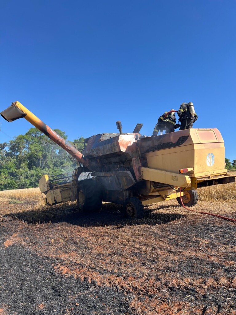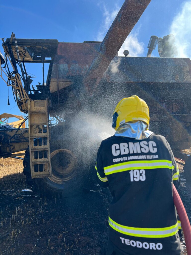 Ao chegarem à ocorrência, os bombeiros constataram que as chamas no maquinário já estavam parcialmente controladas pelo proprietário, condutor do veículo, e por populares que utilizaram um trator com água. Apesar disso, ainda havia focos de incêndio que precisavam ser extintos.
