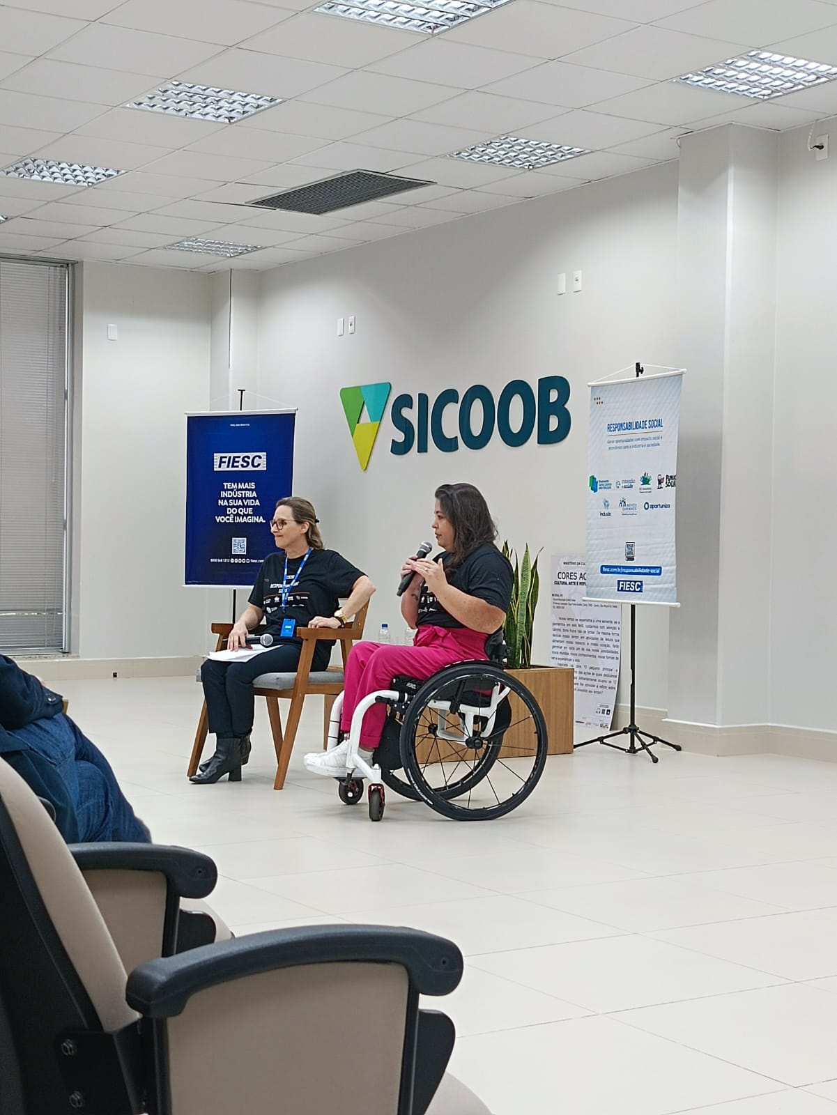 O painel “Inclusão de pessoas com deficiência no mercado de trabalho” foi conduzido pela líder do Programa Inclusão, Sheila Kurtz, que apresentou a atuação da FIESC na pauta de inclusão, as ações de articulação, mobilização e transformação, por meio do Portal de Inclusão.