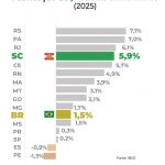 O percentual de 5,9% colocou Santa Catarina na quarta colocação do ranking nacional. O estado ficou atrás apenas de Rio Grande do Sul (7,1%), Pará (7%) e Rio de Janeiro (6,1%). Nesse sentido, a fabricação de produtos alimentícios foi um dos segmentos industriais com maior crescimento de 2025 em Santa Catarina, o que contribuiu para bons índices econômicos no período.