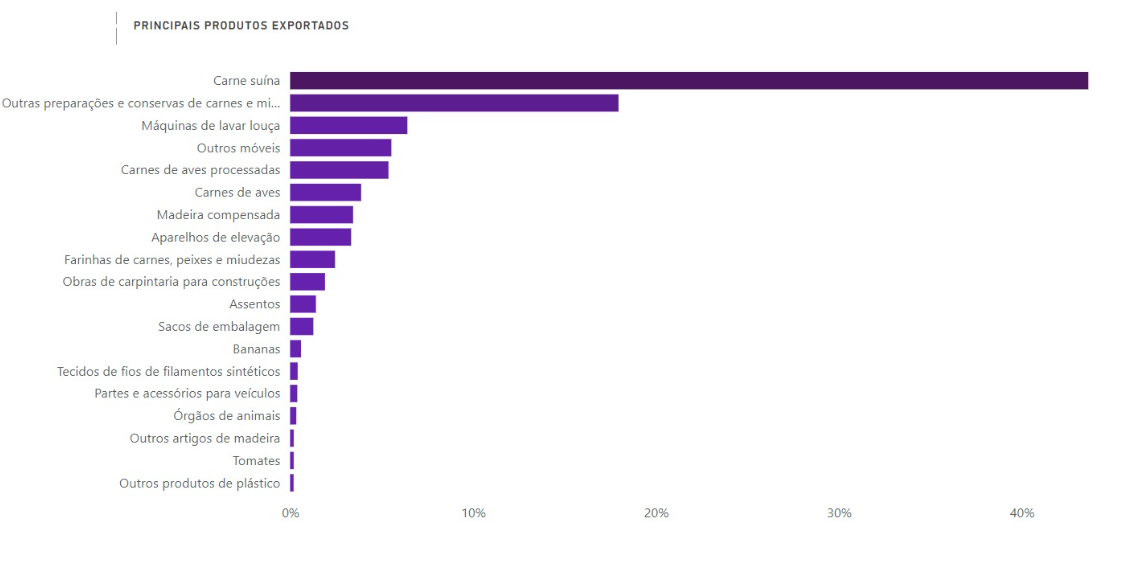 Conforme o vice-presidente regional da Federação das Indústrias de Santa Catarina (Fiesc), Astôr Kist, o Grande Oeste, que inclui o Extremo Oeste, é o grande polo de produção de proteína animal. “Nós somos grandes exportadores de aves, suínos e produtos lácteos e essa proteína animal gera toda uma cadeia de indústrias que fazem a riqueza da nossa região”, destaca. Ainda, de acordo com Kist, o setor alimentício hoje é responsável por cerca de 37% das exportações do estado, e uma boa fatia desse percentual vem do Extremo Oeste.