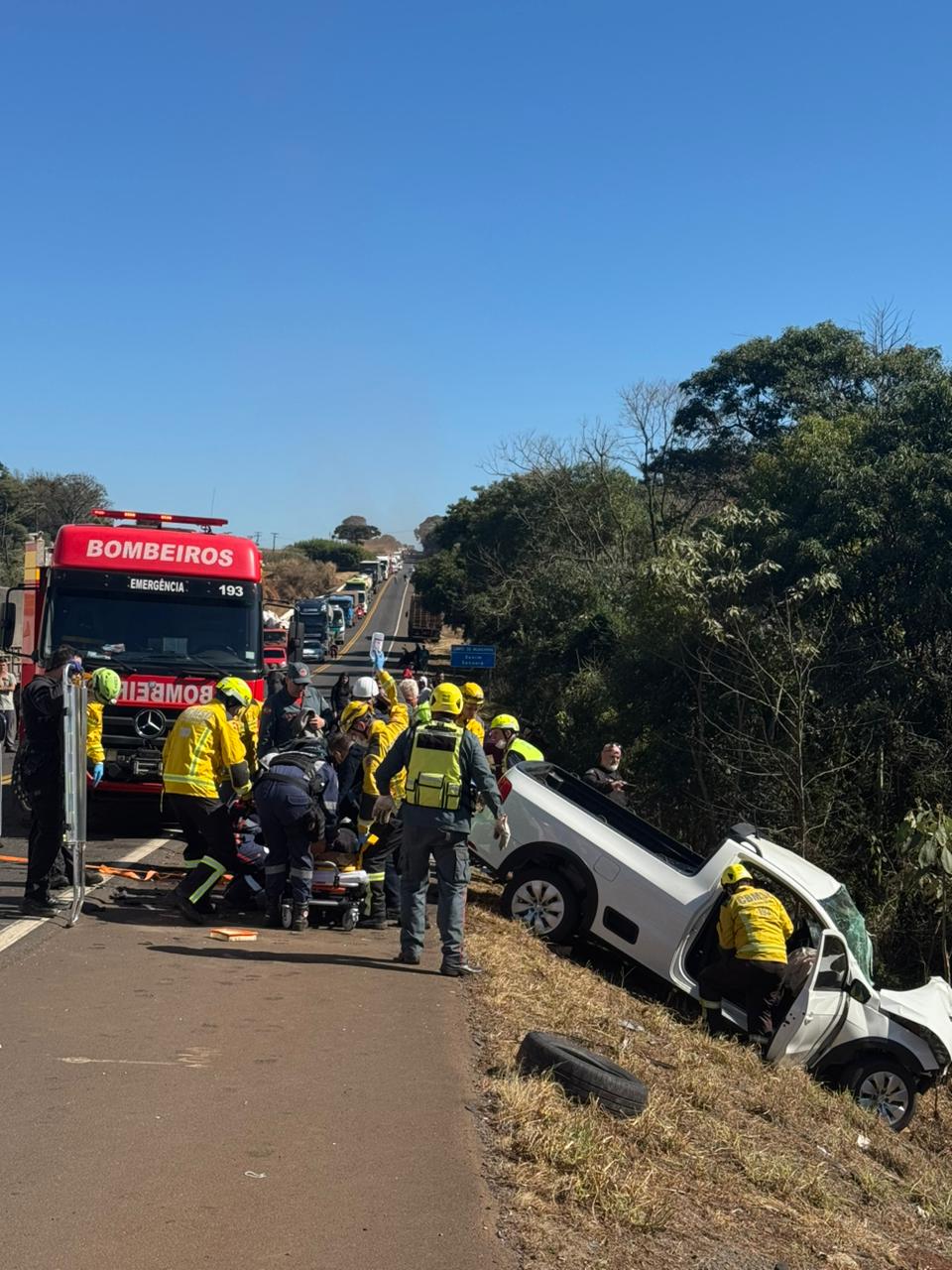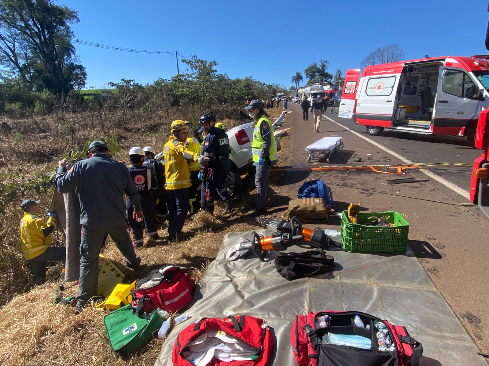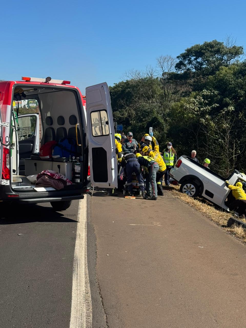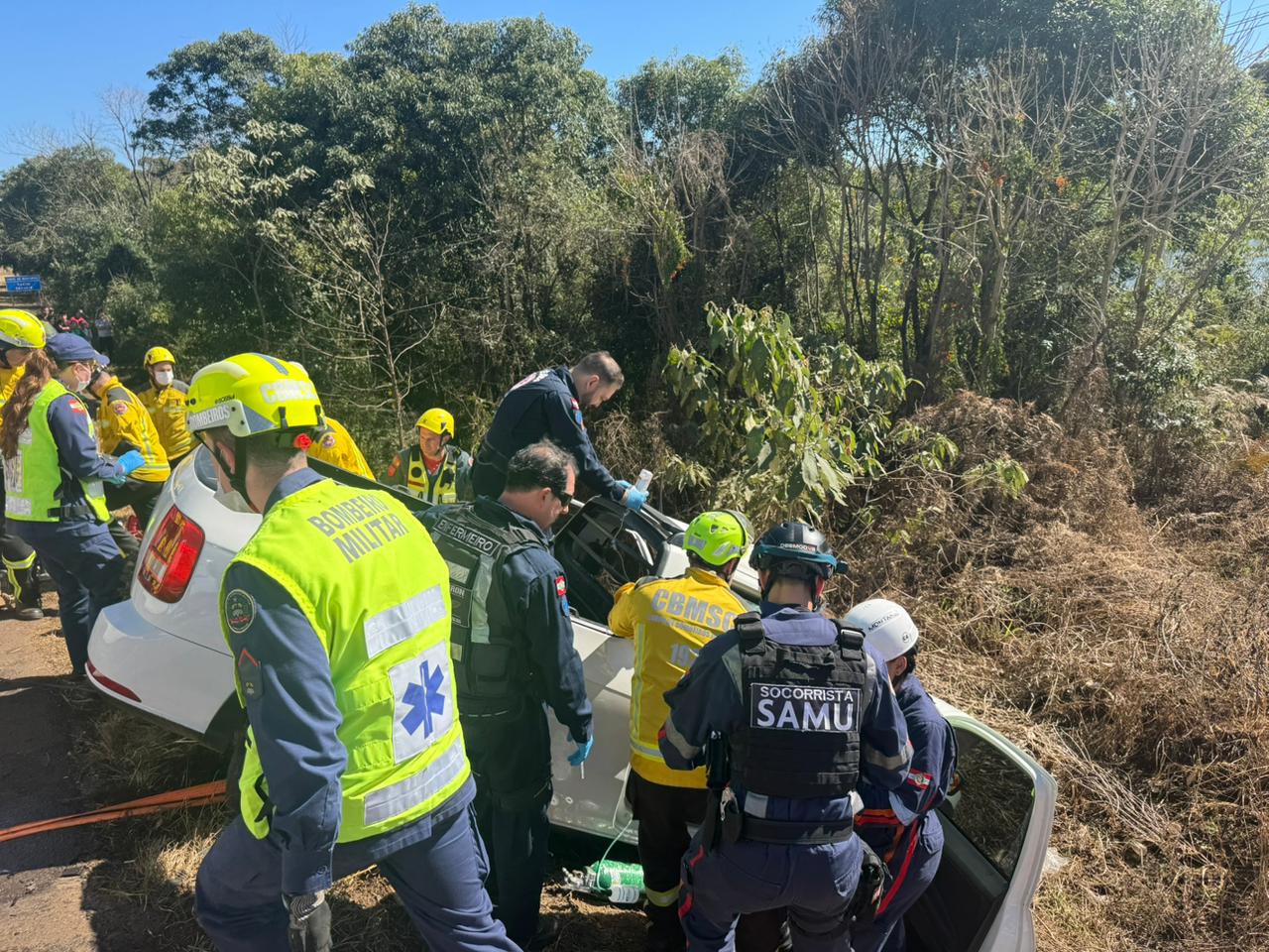 A operação de resgate contou com a atuação conjunta de diversas forças de segurança e saúde. A Polícia Rodoviária Federal (PRF) isolou a área para garantir a segurança da ação. Bombeiros militares e comunitários realizaram o desencarceramento, enquanto a equipe do SAER-Fron, em conjunto com os profissionais do SAMU/Aeromédico, prestou o atendimento inicial à vítima, que apresentava politraumatismos, incluindo ferimentos na cabeça e nos membros superiores e inferiores.