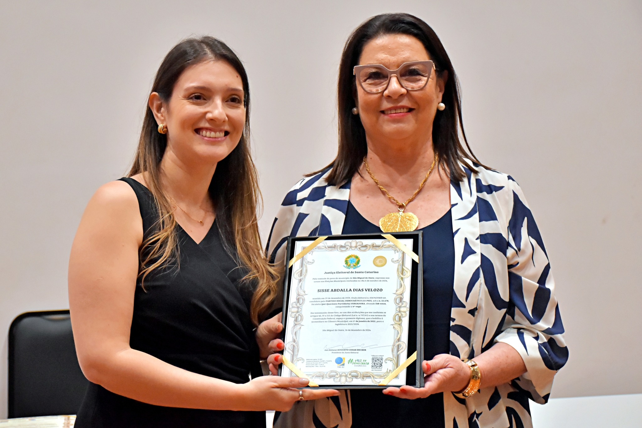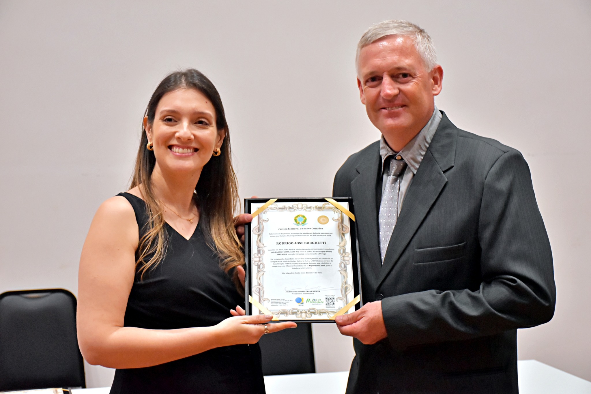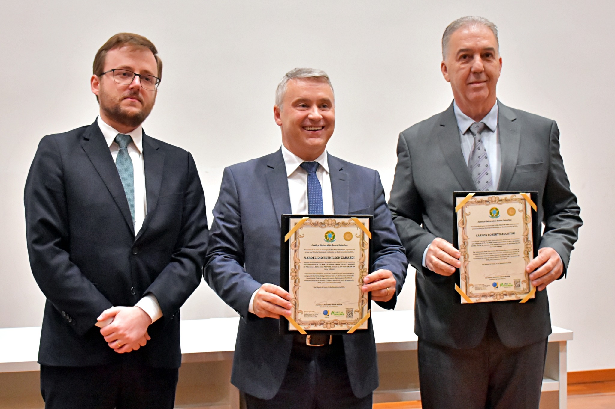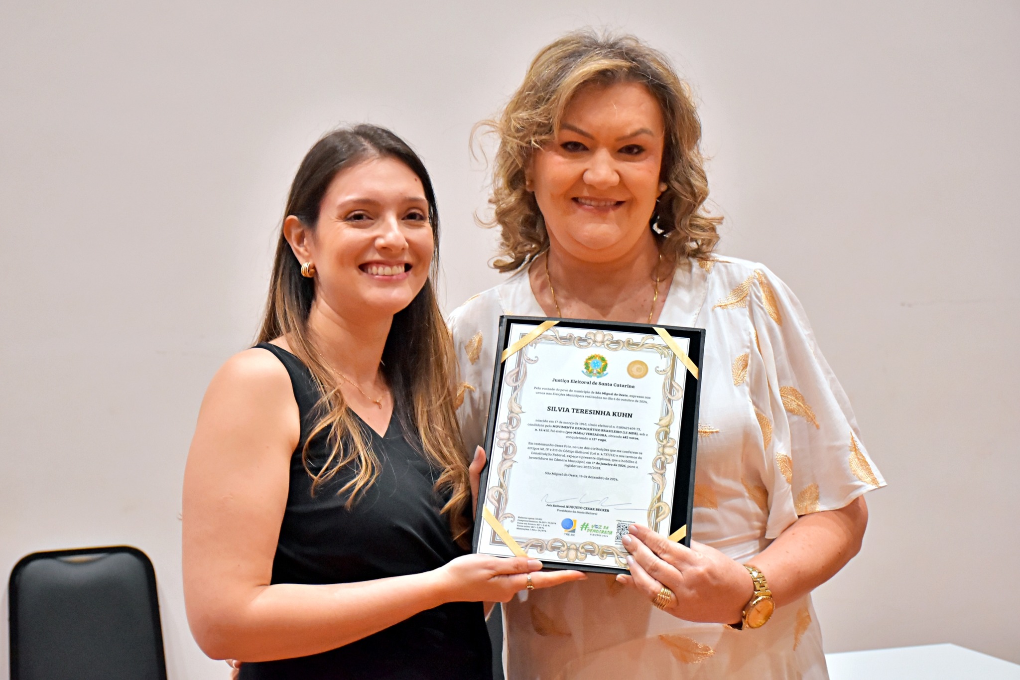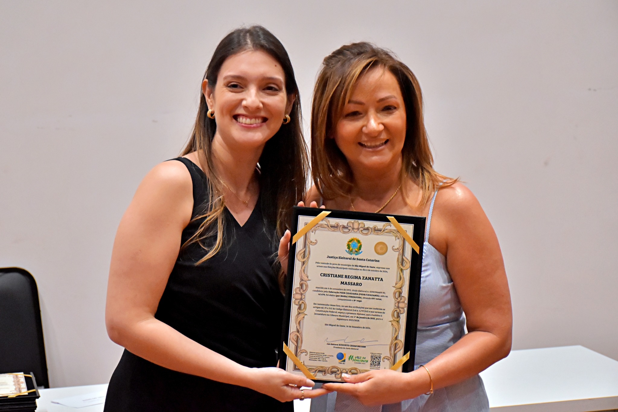 Última atualização: 2024/12/17 10:56:53Nesta segunda-feira (16), a Justiça Eleitoral realizou a cerimônia de diplomação dos vereadores, prefeitos e vice-prefeitos eleitos de São Miguel do Oeste. O evento marca a oficialização dos resultados das eleições municipais e confirma que os eleitos estão aptos a assumir os respectivos cargos.