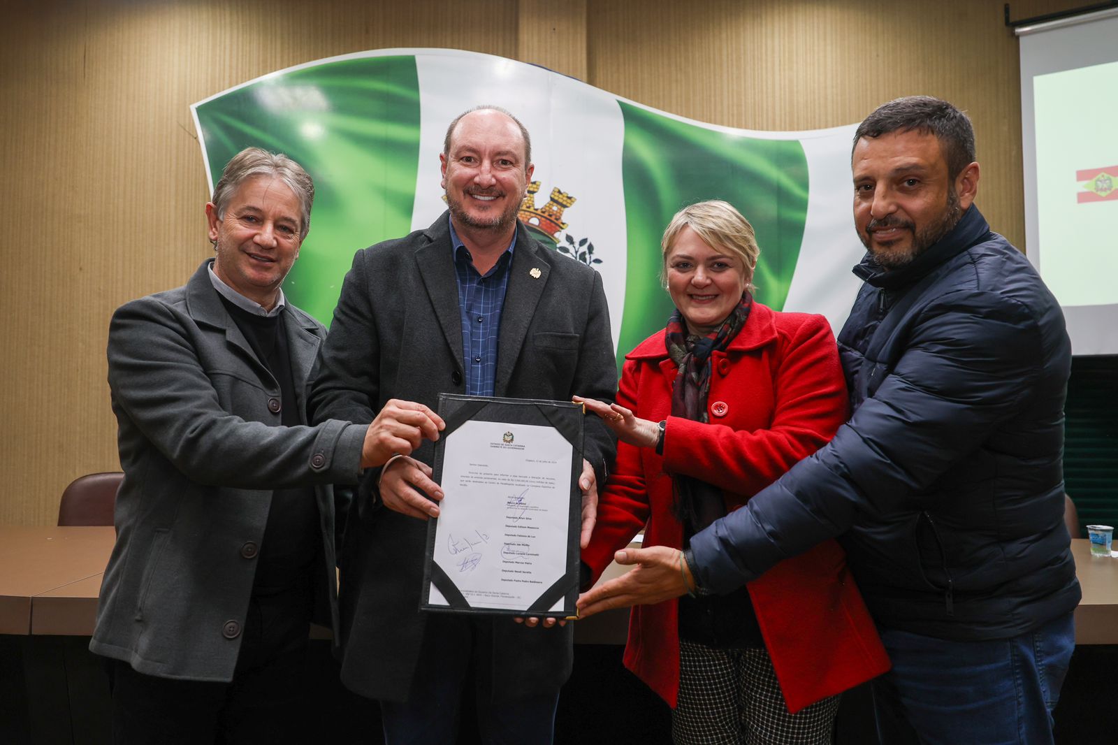 Essa agenda contou com participações atuantes dos demais deputados da bancada estadual emedebista, o líder Fernando Krelling, Antídio Lunelli, Emerson Stein, Tiago Zilli e Volnei Weber, Mário Motta (PSD) e Ivan Naatz (PL), além do secretário da Infraestrutura Jerry Comper, dos deputados federais Carlos Chiodini, Rafael Pezenti e Luiz Fernando Vampiro, do MDB.