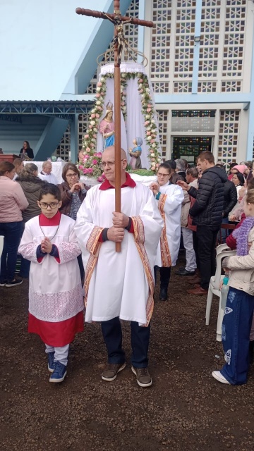 Fiéis lotaram o pátio na missa campal com o bispo diocesano