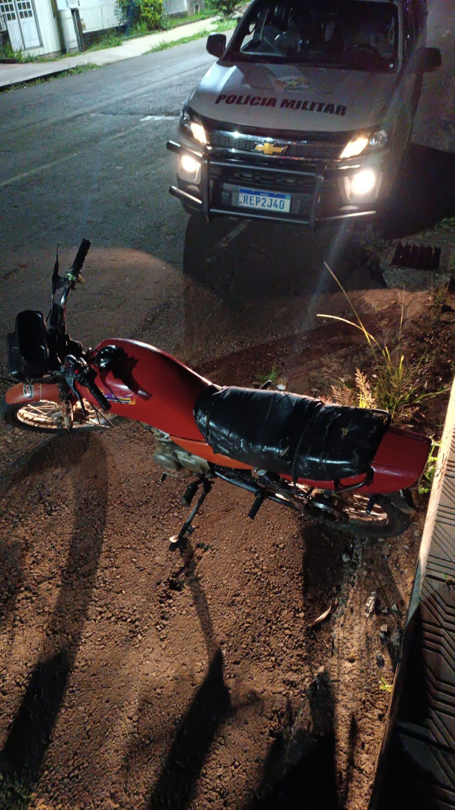 Diante da situação, a Polícia Militar registrou um boletim de ocorrência e recolheu a motocicleta ao pátio conveniado, onde permanecerá à disposição das autoridades para os procedimentos cabíveis. O caso segue sob investigação.