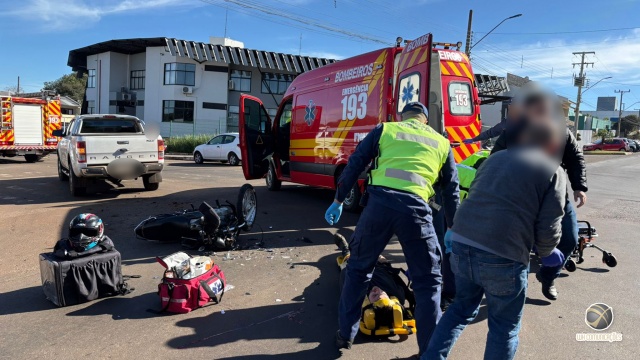Um motociclista foi encaminhado ao hospital com ferimentos na face após a colisão com uma caminhonete no cruzamento das ruas Marcílio Dias e Itaberaba.