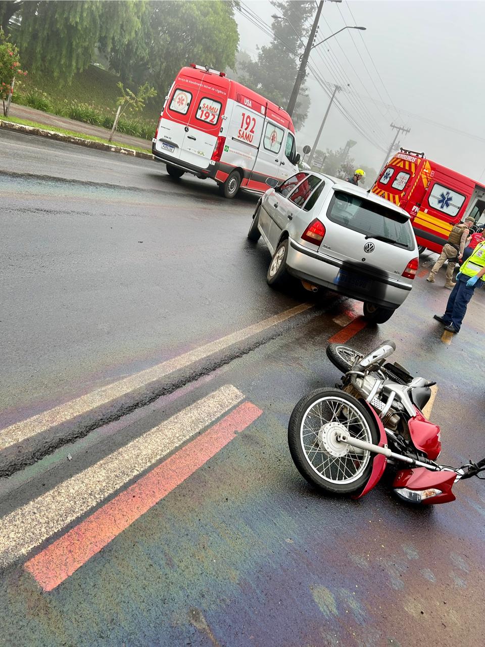 Última atualização: 2025/02/18 10:58:41De acordo com informações do Corpo de Bombeiros, um motociclista de 50 anos ficou gravemente ferido em um acidente de trânsito ocorrido por volta das 7h30 da manhã desta segunda-feira (18) na Rua Waldemar Rangrab, no bairro Jardim Peperi, em São Miguel do Oeste. A colisão envolveu um Volkswagen Gol e uma motocicleta Honda CG.