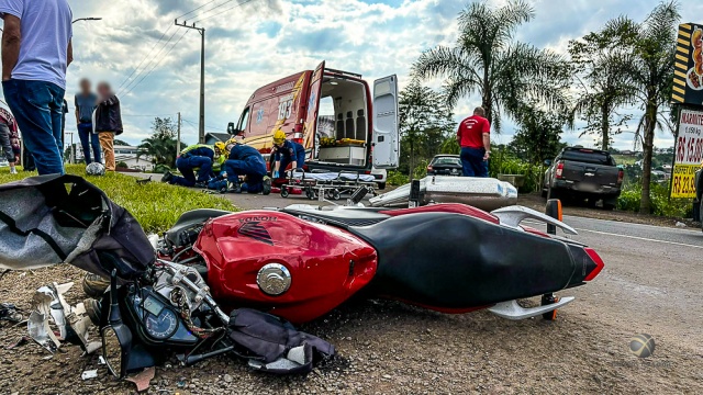 Segundo informações da reportagem do grupo WH Comunicações, o acidente ocorreu quando o idoso condutor de um Monza tentou fazer uma conversão na via, causando a colisão com a motocicleta. O motociclista foi socorrido pelo Corpo de Bombeiros, com suspeita de fratura em uma das pernas. Após a imobilização, ele foi levado ao Pronto Socorro do Hospital Regional Terezinha Gaio Basso para atendimento médico.