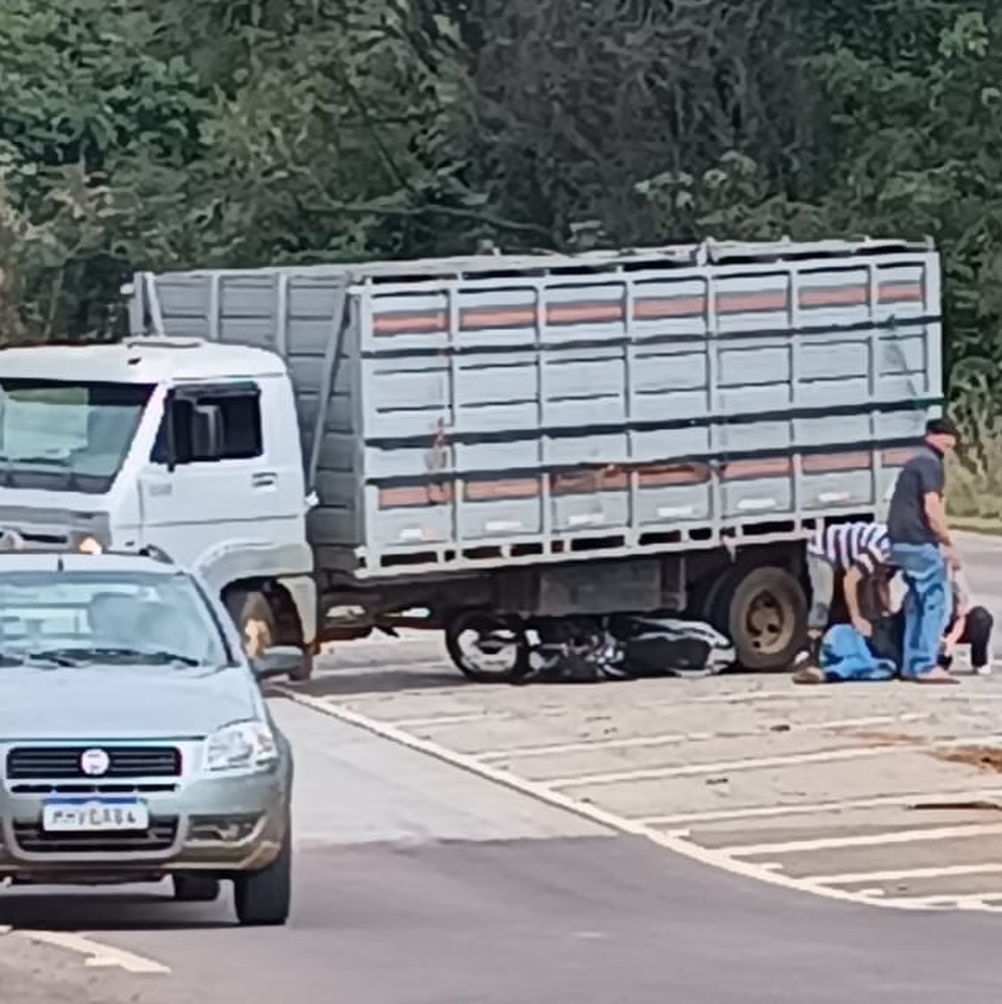 Última atualização: 2025/07/15 5:24:08Um acidente de trânsito foi registrado na tarde desta terça-feira, 15 de julho, na BR-163, em São José do Cedro, nas proximidades do viaduto de acesso à linha Esquina Derrubada. A colisão envolveu uma motocicleta Honda Bros, com placa de Princesa (SC), e um caminhão Volkswagen, com placa de Xanxerê (SC).