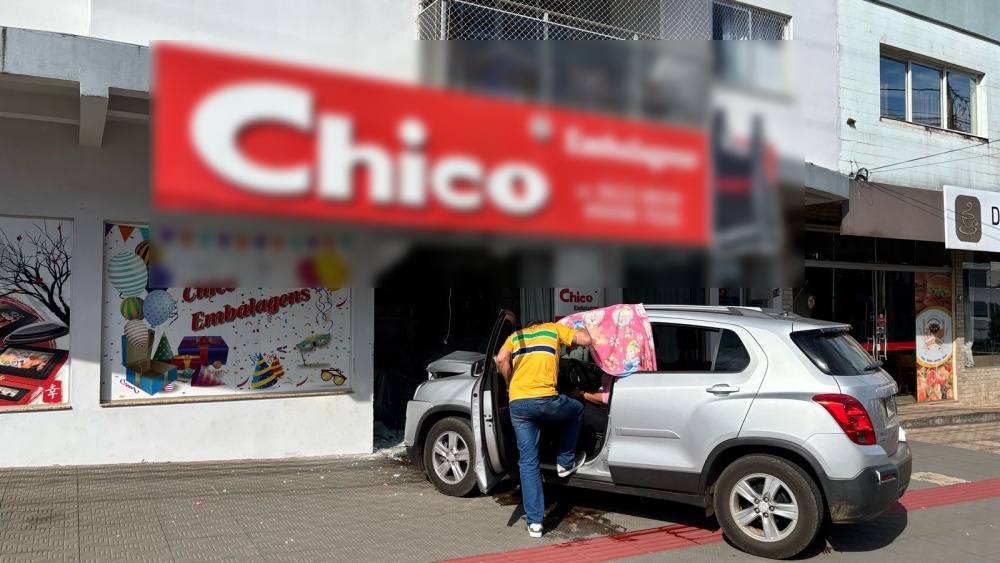 Última atualização: 2025/05/01 4:52:18Uma motorista causou um acidente inusitado na tarde desta quinta-feira (1º) no centro de São Miguel do Oeste. Ao confundir os pedais do seu Tracker, ela perdeu o controle do carro e invadiu uma empresa de embalagens localizada nas proximidades do semáforo da Rua Santos Dumont. O acidente foi registrado por volta das 14h30.