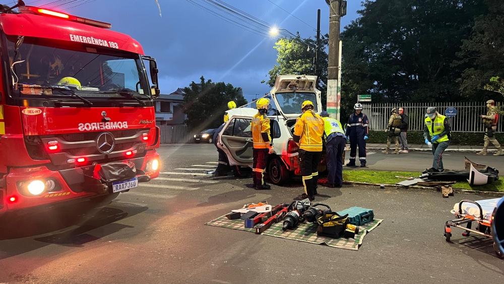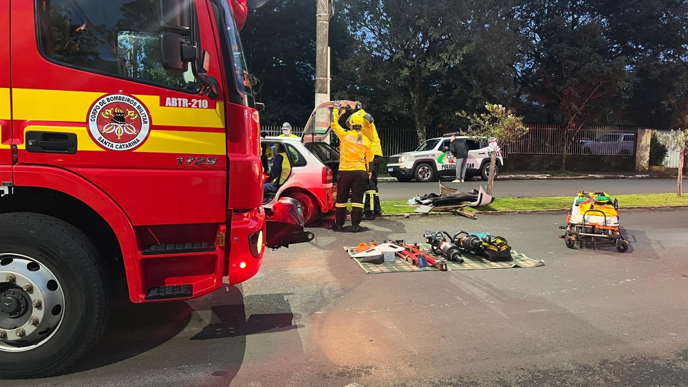 De acordo com os socorristas, o motorista de um Volkswagen Gol foi encontrado inconsciente e preso às ferragens. Ele precisou ser resgatado pelo Corpo de Bombeiros e encaminhado com ferimentos ao Hospital Regional Terezinha Gaio Basso.