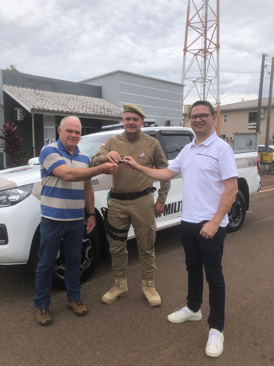 Representando o deputado, o assessor Sadi Erlo reforçou o compromisso com a segurança: “Maurício veio da área e sempre apoia as forças policiais. Esta viatura é a única deste modelo destinada ao Extremo Oeste e foi adquirida a pedido do prefeito e do comando da PM”.