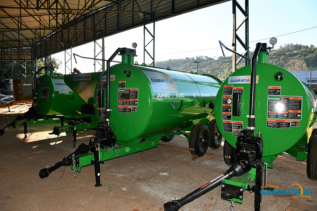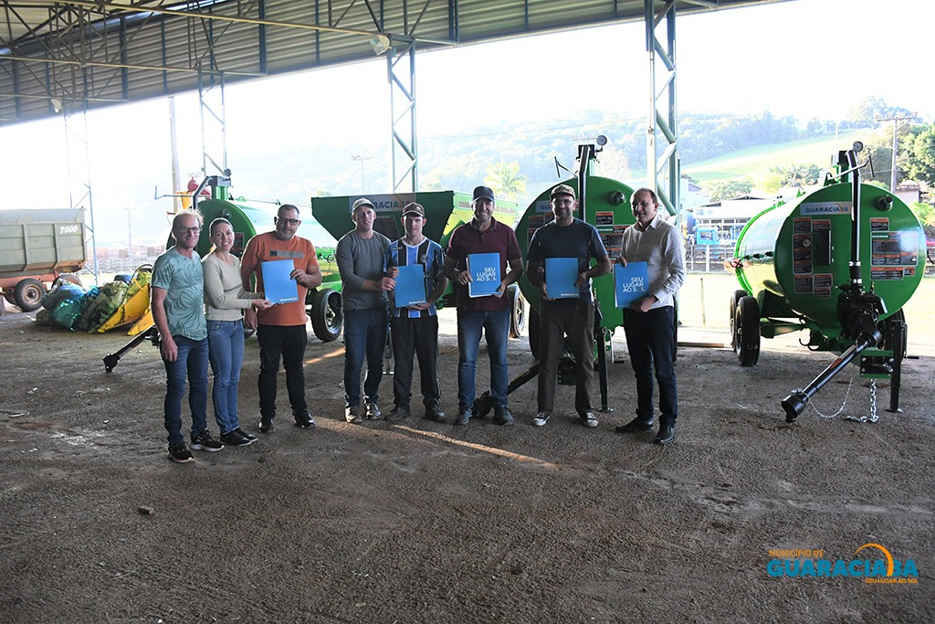 Foi realizada na tarde de terça-feira (06) a assinatura de cessão de uso e entrega de equipamentos agrícolas para grupos de produtores rurais de Guaraciaba. Trata-se de quatro equipamentos, entre eles distribuidores de adubo líquido e distribuidores de adubo seco e calcário.