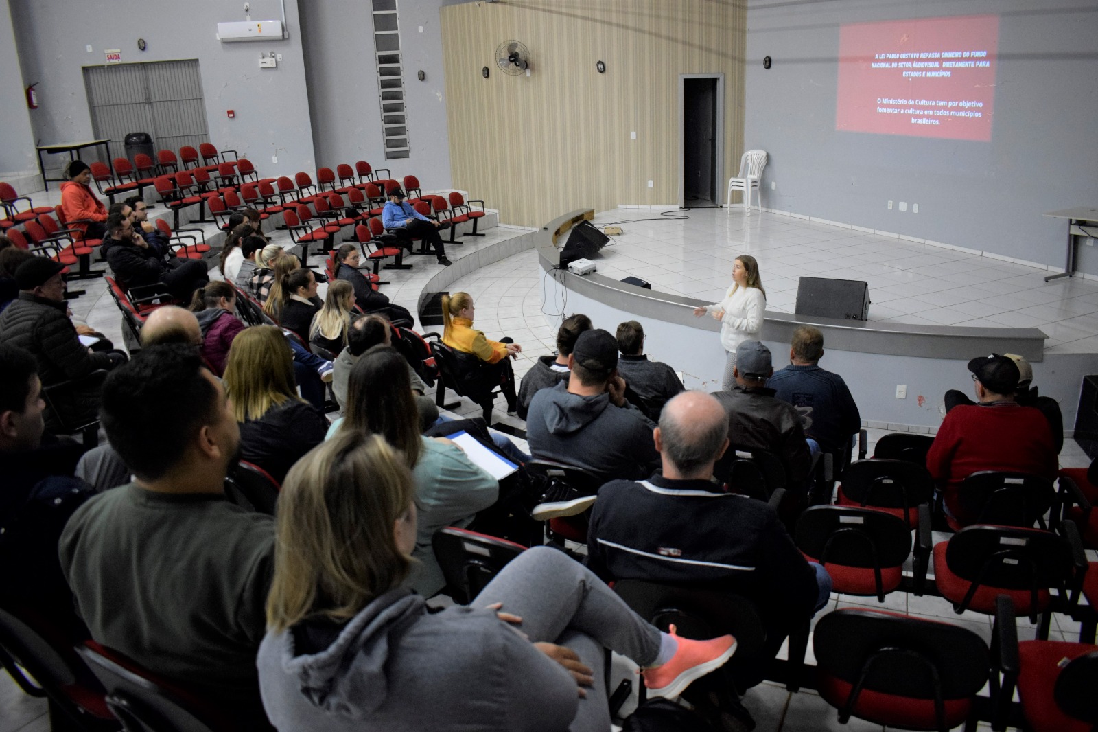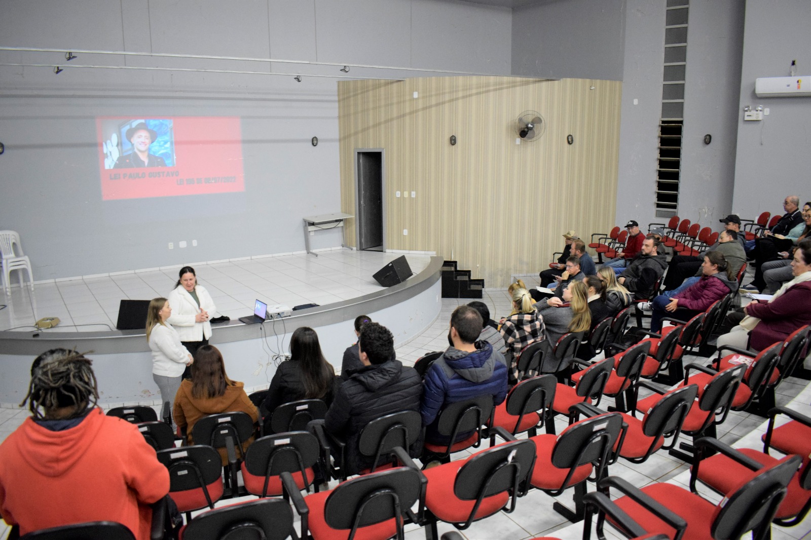 Nesta segunda-feira (19), a Secretaria Municipal de Educação, Cultura e Esporte promoveu uma reunião para discutir a execução dos recursos da Lei Paulo Gustavo no município. O encontro teve início às 19h30 e ocorreu no Auditório de Multiplouso Armando Domingos Montagna.