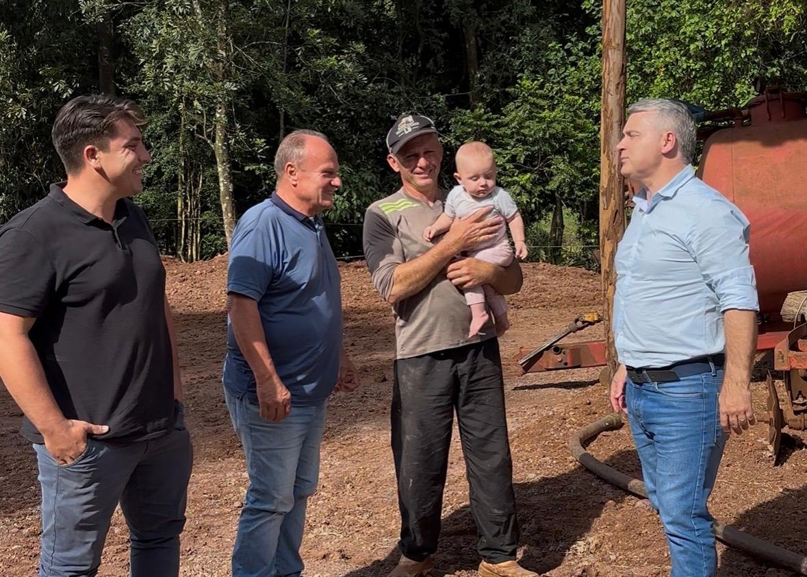 A primeira visita ocorreu na propriedade de Antônio Orso e Jorge Orso, na Linha Aparecida. No local, o município está concedendo incentivo econômico por meio do programa de horas-máquina para a ampliação do sistema Compost Barn na bovinocultura de leite, além de melhorias voltadas à atividade de piscicultura.