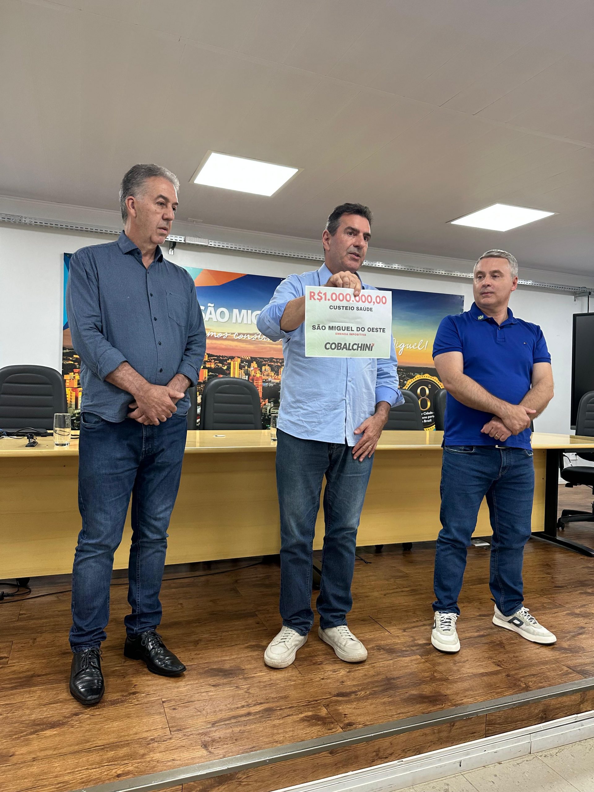 Última atualização: 2026/02/18 5:50:34O prefeito Edenilson Zanardi e o vice-prefeito Carlos Agostini, que também responde pela Secretaria de Saúde, receberam, na tarde desta quarta-feira (18), no Salão Nobre do Centro Administrativo, recursos provenientes de emendas parlamentares anunciadas pelo deputado federal Valdir Cobalchini.