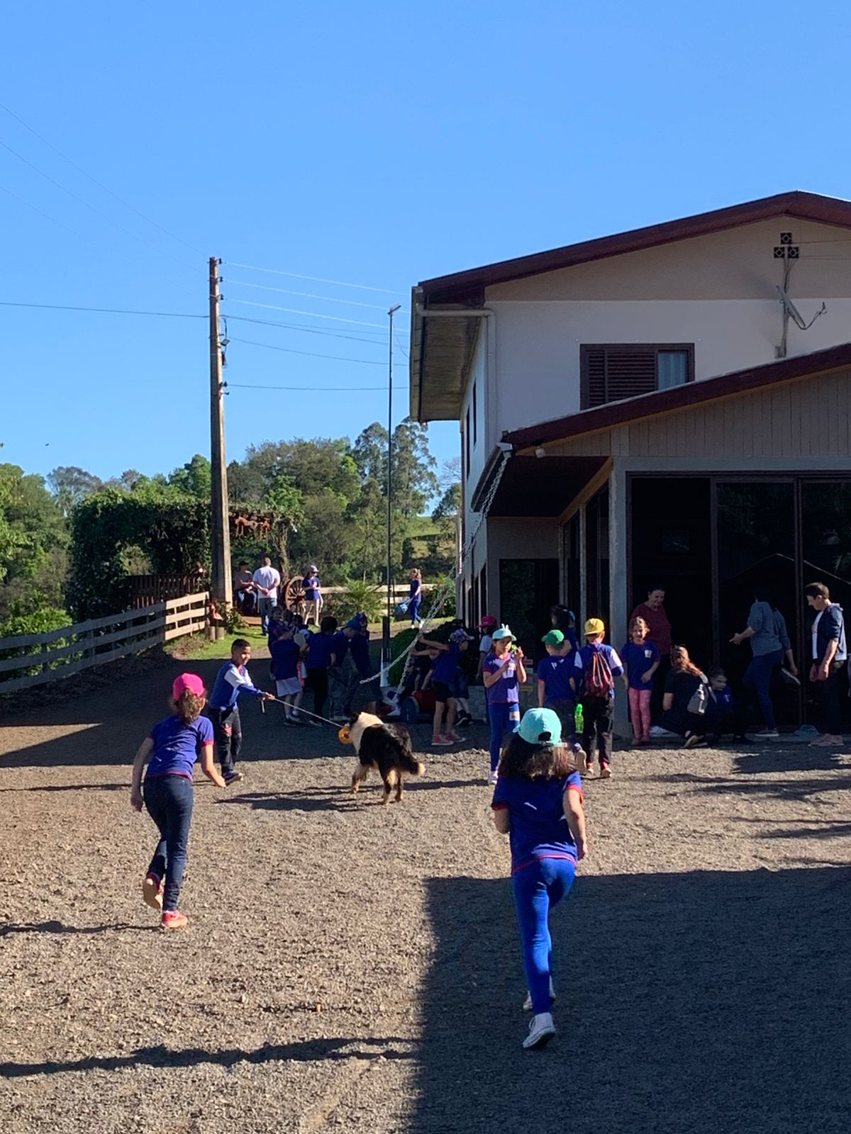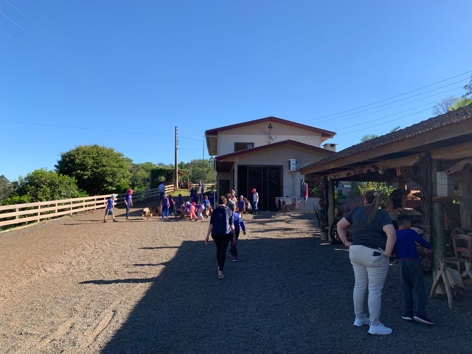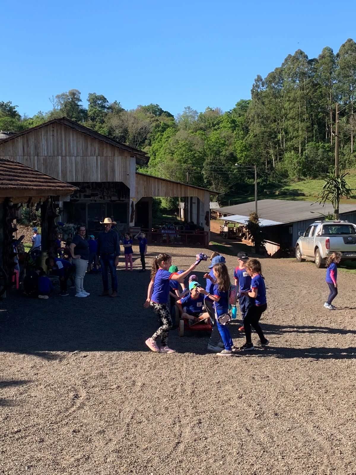 Acompanhados pelas professoras Catia, Bruna e Franci, os alunos percorreram trilhas para observar animais, peixes e açudes, interagiram com cachorros e ferramentas agrícolas e puderam brincar livremente em meio ao ambiente natural. No local, aprenderam sobre o cultivo de milho, seus derivados e processo de polinização, além de conhecer a produção de feijão, amendoim, mandioca e cana, utilizada para preparar melado, garapa e rapadura. Também receberam explicações sobre curiosidades do meio rural, como o tempo de incubação de ovos e os impactos da geada sobre as plantações de banana.