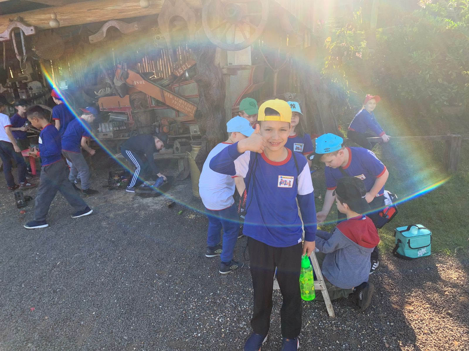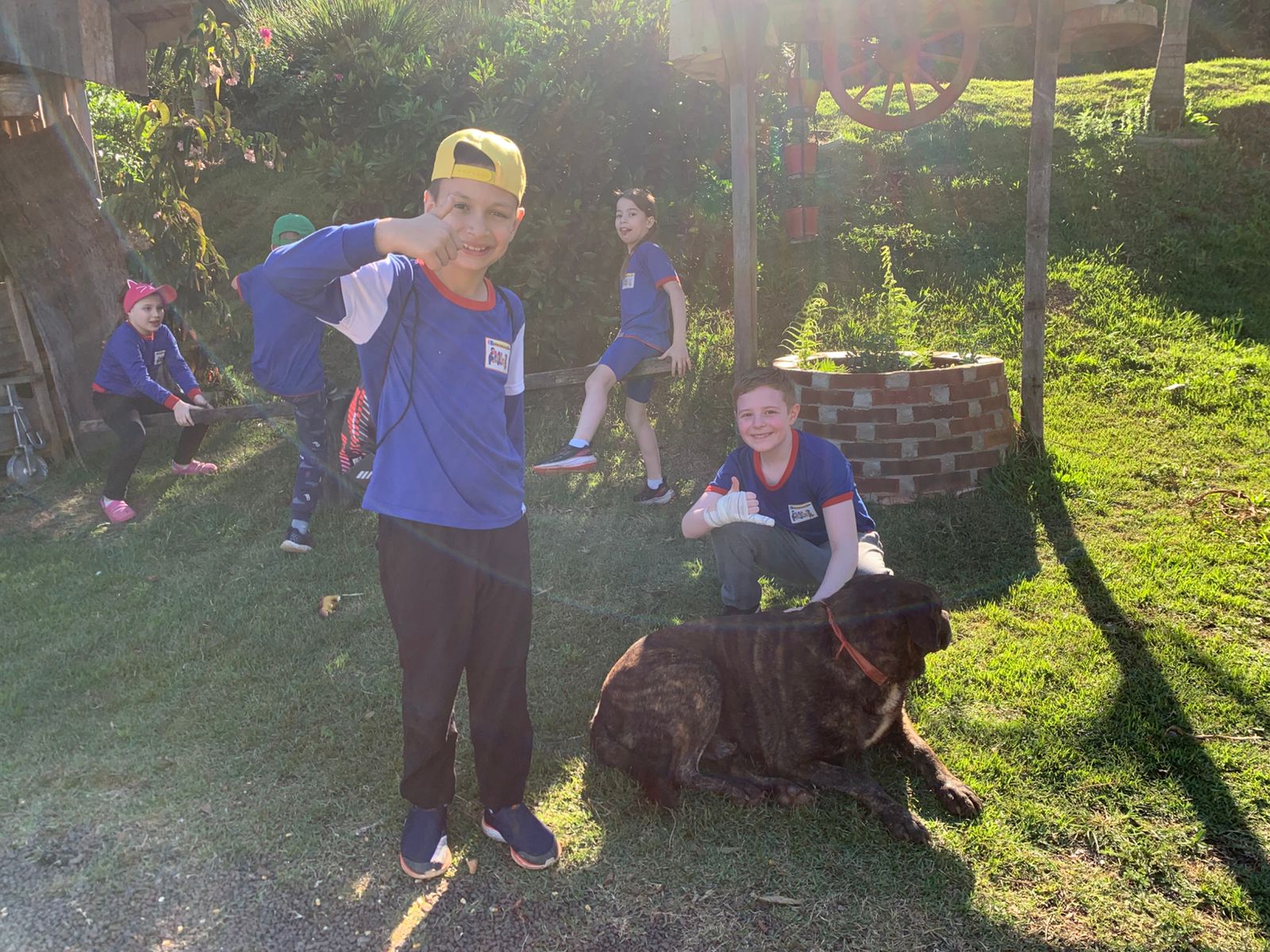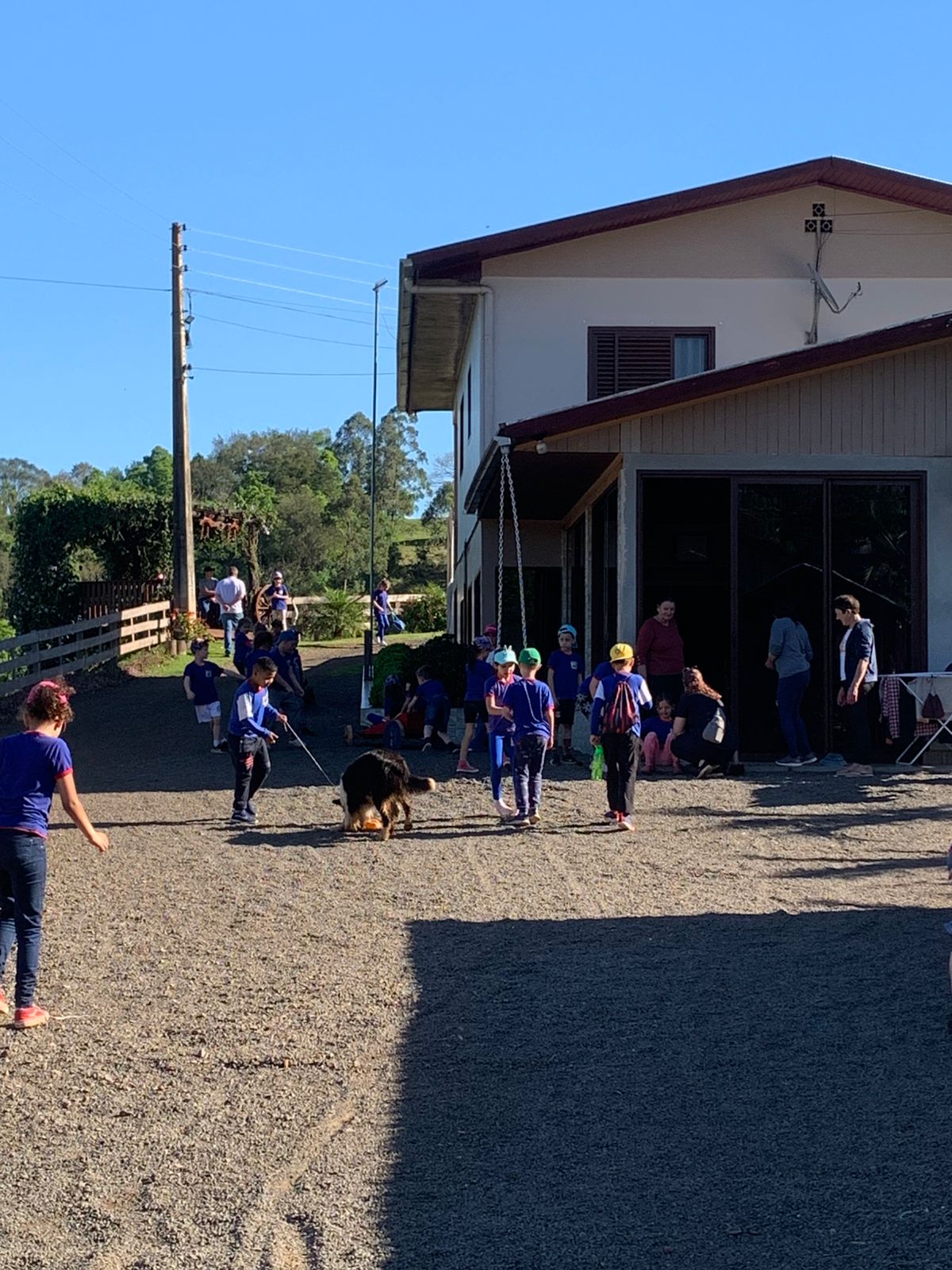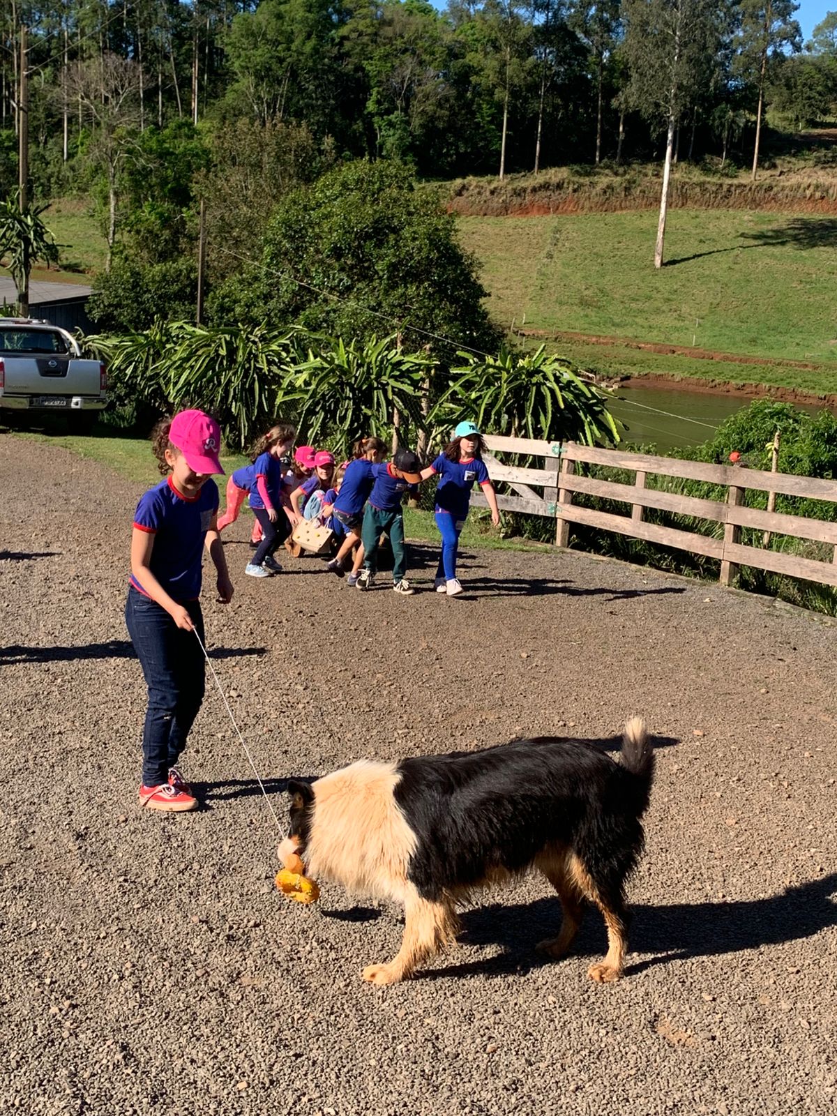 Acompanhados pelas professoras Catia, Bruna e Franci, os alunos percorreram trilhas para observar animais, peixes e açudes, interagiram com cachorros e ferramentas agrícolas e puderam brincar livremente em meio ao ambiente natural. No local, aprenderam sobre o cultivo de milho, seus derivados e processo de polinização, além de conhecer a produção de feijão, amendoim, mandioca e cana, utilizada para preparar melado, garapa e rapadura. Também receberam explicações sobre curiosidades do meio rural, como o tempo de incubação de ovos e os impactos da geada sobre as plantações de banana.
