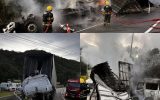 Carreta desgovernada atinge van e provoca incêndio com 17 vítimas