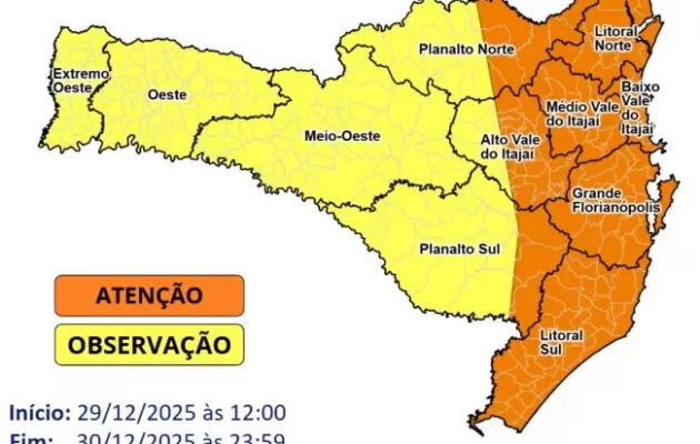 Chuva volta a ganhar força em SC nesta segunda com risco de alagamentos e enxurradas